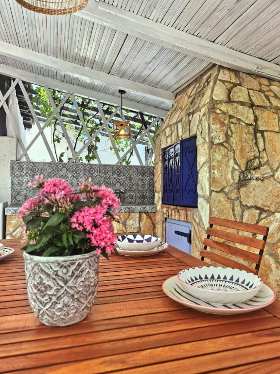 Aantrekkelijke en functionele appartementen in het rustige deel van Stare Novalja, 5 minuten. loop naar het strand! Elk appartement heeft een woonkamer, twee slaapkamers, een keuken, een eetkamer, een badkamer en een groot terras met uitzicht op de zee. Er is ook een tuin met een parkeerplaats aan de voorkant van de accommodatie en een groot overdekt terras met barbecue en een buitendouche aan de achterkant van het gebouw.
