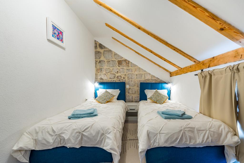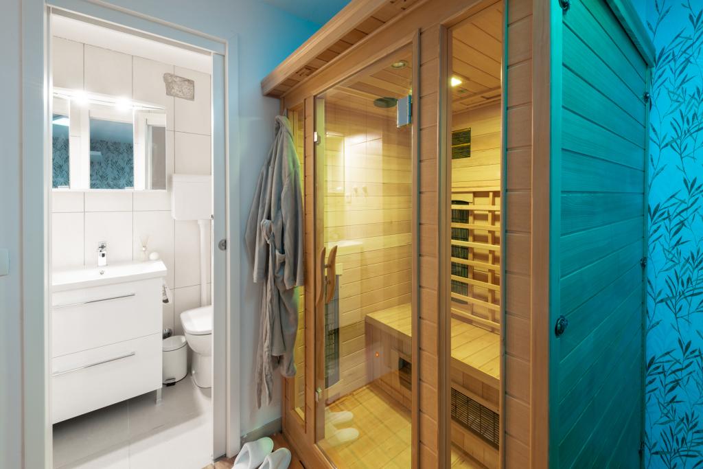 Deze prachtig ingerichte, rustieke, traditionele villa is onlangs gerenoveerd, heeft een eigen ingang en beslaat 100 vierkante meter woonruimte, exclusief voor uw privégebruik. Er kunnen 4 personen in de slaapkamers slapen en één persoon op een extra bed in de woonkamer. Op de begane grond staat een wellnesscentrum tot uw beschikking met een fitnessruimte, infraroodsauna en jacuzzi voor complete ontspanning. De badkamer bevindt zich naast de fitnessruimte. Op de eerste verdieping vindt u een woonkamer met een flatscreen smart-tv (+ maxTv-streamkanalen), een eetkamer, een volledig uitgeruste keuken en een toilet. De tweede verdieping bestaat uit 1 badkamer en 2 slaapkamers: Slaapkamer 1 - Twee eenpersoonsbedden Slaapkamer 2 - Twee eenpersoonsbedden - De badkamer is voorzien van een wasmachine en een droger - Strijkijzer en strijkplank - Airconditioning in de woonkamer/eetkamer, elke slaapkamer en de fitnessruimte - De badkamers, de fitnessruimte en de sauna/jacuzzi zijn voorzien van vloerverwarming