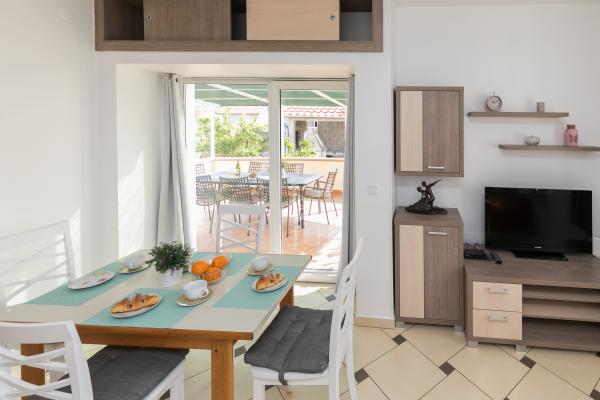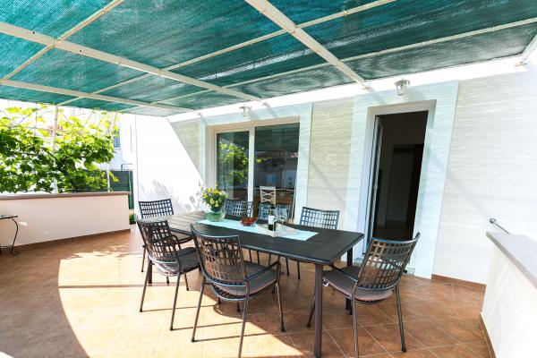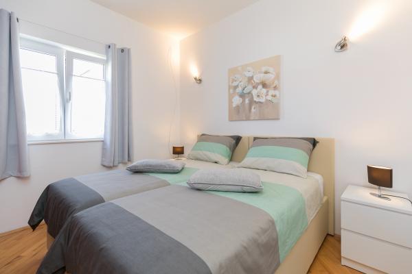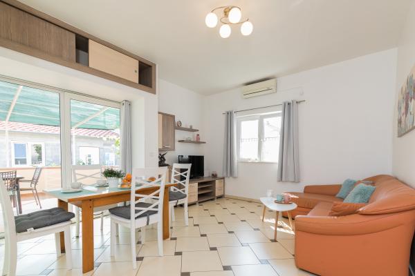 Ruim en volledig ingericht appartement met gratis parkeergelegenheid in Sukošan, op 12 km van Zadar. Het ligt in de directe omgeving van het centrum en alles wat je nodig hebt is op een afstand van 50 tot 500 m van de appartementen, bushaltes, bakkerijen, winkels, restaurants, apotheek. Het dichtstbijzijnde strand ligt op 800 meter afstand. Het appartement is ideaal voor koppels en gezinnen met 2 kinderen. Het heeft ook een aangepaste ingang voor rolstoelgebruikers. Er is een mogelijkheid om gasten op te halen bij een busstation of de luchthaven van Zadar. Het appartement bevindt zich achter ons huis op de begane grond en heeft een aangepaste ingang voor rolstoelgebruikers. Gratis parkeren op de binnenplaats. Capaciteit: slaapkamer voor 2 personen, slaapbank in de woonkamer voor 2 personen en 1 babybedje indien nodig. Leefruimte: 60 m2. Terras: 25 m2.