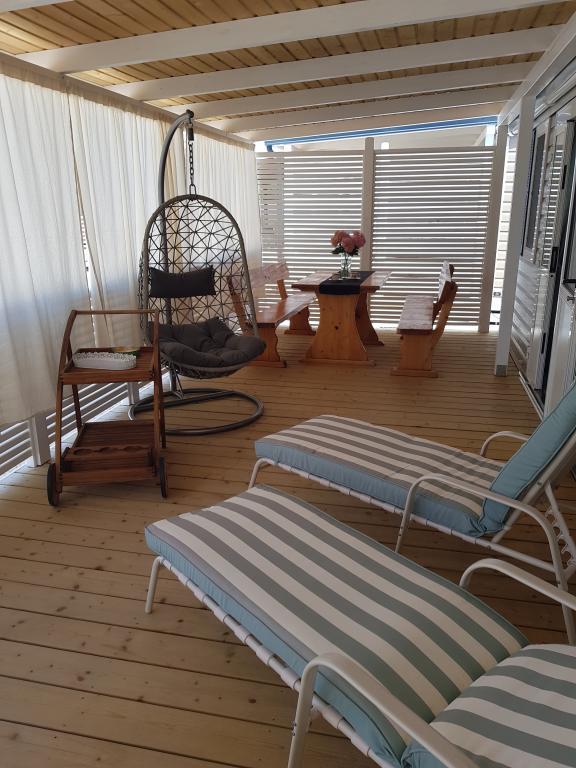 Verblijf in vrijstaande huisjes op een kleine familiecamping direct aan het strand.