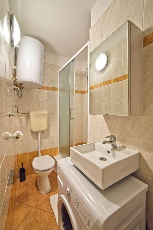 We brachten een week tijd in de twee families. Een totaal van vier volwassenen en vier kinderen in de leeftijd 4 tot 11 jaar. Appartement zeer goed uitgerust, schoon, mooi, geweldige positie. Twee fantastische terrassen. Naast de zee met een zandbodem en ondiep, zodat de kinderen kunnen veilig spelen rond augustus zelfs 50 meter van de oever. Naast de winkel met de meest benodigde dingen, een kilometer verderop iets grotere markt. Seaside bar en restaurant, dus je kunt er tijdens de dag te eten. Ik beveel!