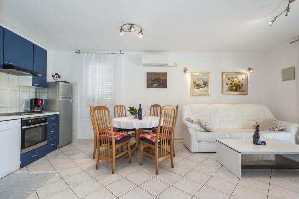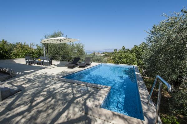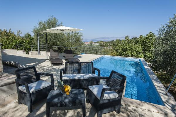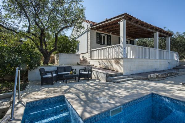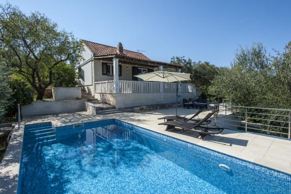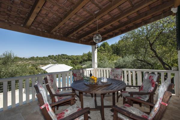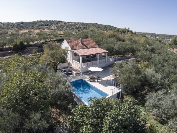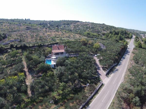 Volledig ingerichte huis op het eiland, omringd door olijfbomen. Met een groot overdekt terras biedt een panoramisch uitzicht over de stad Bol, de zee en de stad Split. Overdekt terras is voorzien van tuinmeubilair Aan de westelijke kant is er een terras met een barbecue. Het huis heeft ruimte voor twee parkeerplaatsen. Het huis heeft 2 slaapkamers. In de keuken, woonkamer heeft een slaapbank. De keuken heeft een vaatwasser. De badkamer heeft een douche, toilet, wastafel en wasmachine. Plaats vol met zandstranden die kan worden bereikt met de auto. In het dorp zijn diverse horeca en sportfaciliteiten. Liefhebbers van fietsen kunnen genieten van de 25 fietsroutes van het eiland.