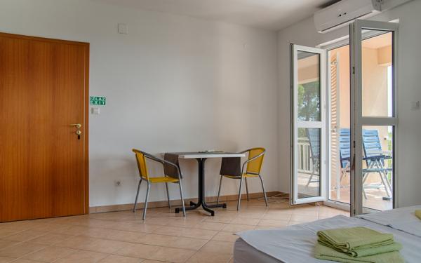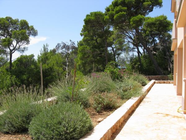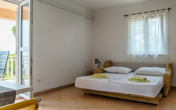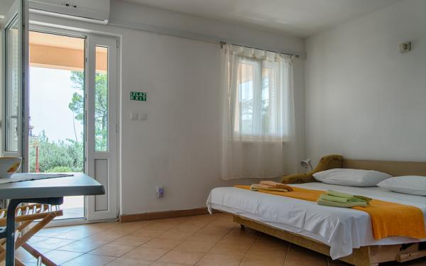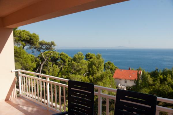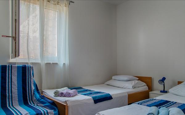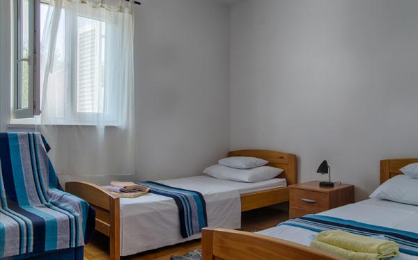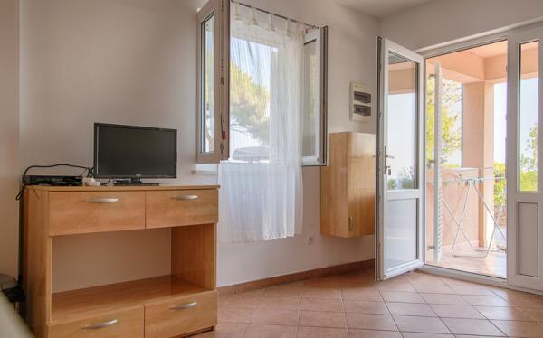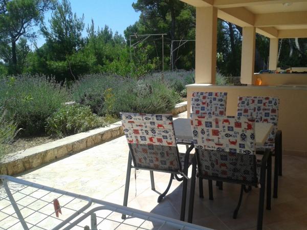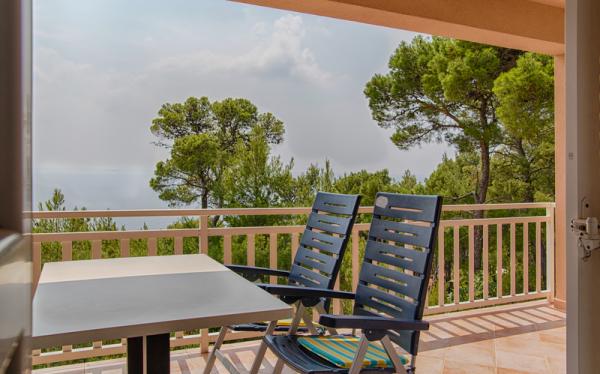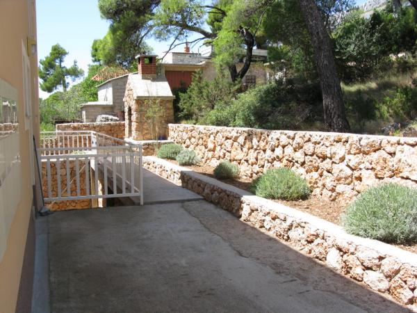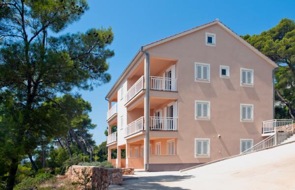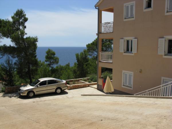 De appartementen liggen in een gezinswoning in een rustig dorp aan de zuidkant van het eiland, Sveta Nedilja. Rondom het huis zijn er pijnbomen, en aan de voorzijde van het huis is een eigen tuin met mediterrane planten (lavendel, citroen, salie, rozemarijn, bougainvillea, afb ...). Het huis heeft drie verdiepingen. Bij het huis is een parkeerplaats voor elk appartement. Elk appartement heeft een uitzicht op zee. Elk appartement heeft een aparte slaapkamer, badkamer, woonkamer met keuken en een terras met uitzicht op zee.