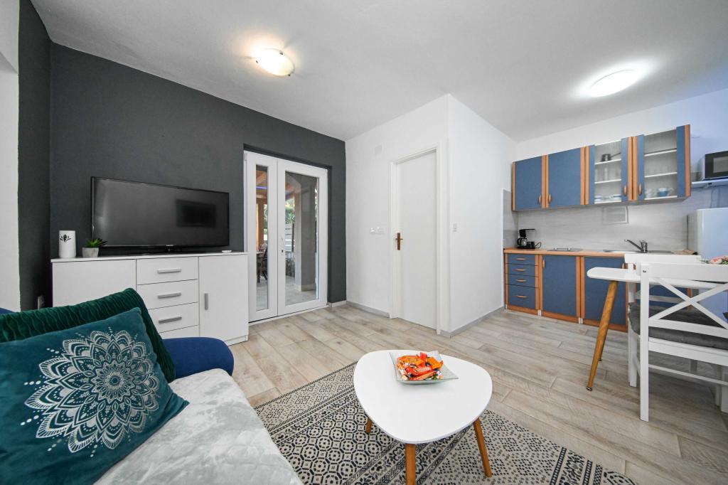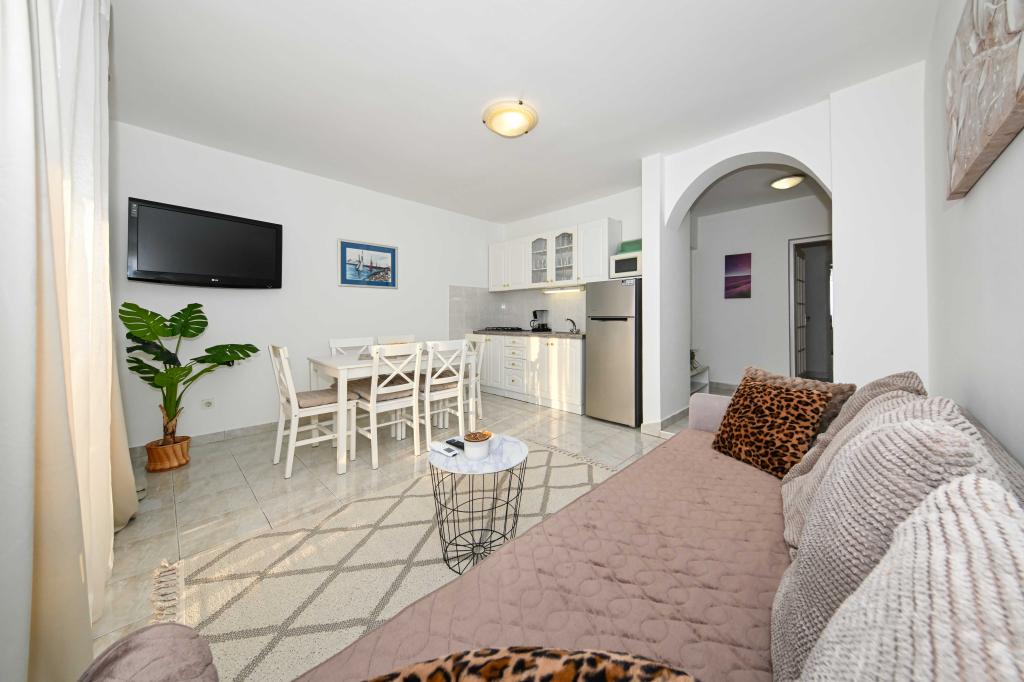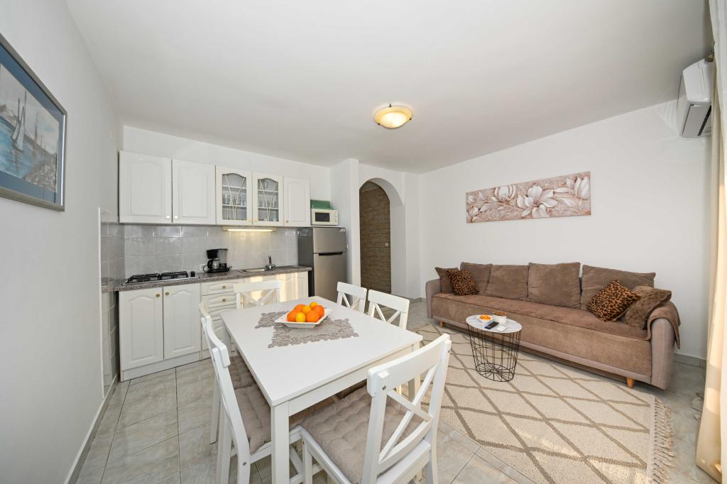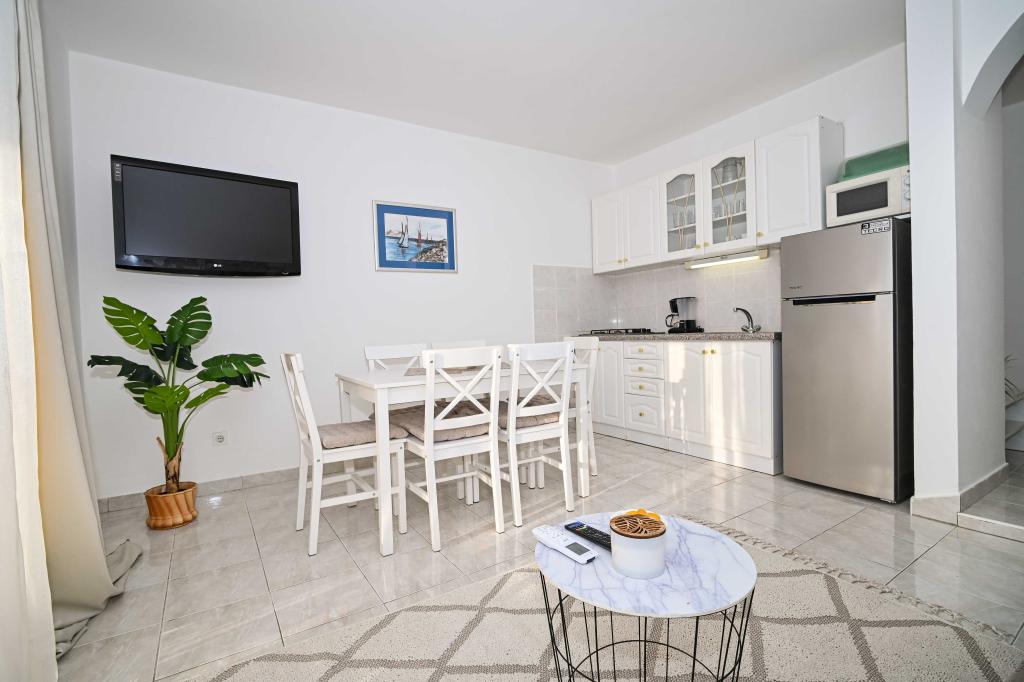 Inlusief niet Toeristenbelasting.Tamaris: Op de zandige kust, is de thuisbasis van onze kleine restaurant waarin wij bieden het volgende: De mogelijkheid van halfpension voor onze gasten, De mogelijkheid om individuele maaltijden - voor onze gasten tegen aanvaardbare prijzen, De mogelijkheid tot het huren van strandstoelen en parasols, De mogelijkheid van het organiseren van diverse feestelijke diner, Hotel parkeren in de buurt van het strand, Het zandstrand is zeer geschikt voor kinderen en volwassenen. Extra aanbod: De mogelijkheid van het vissen op zee, De mogelijkheid om een boot te huren, De mogelijkheid van reizen naar de Kornati, en andere bestemmingen Rijden met een onderzeeër