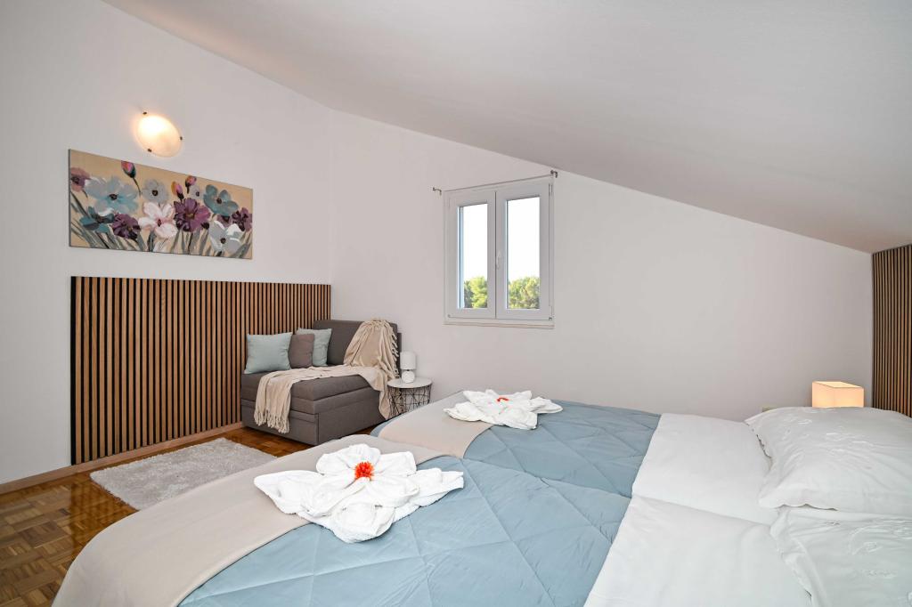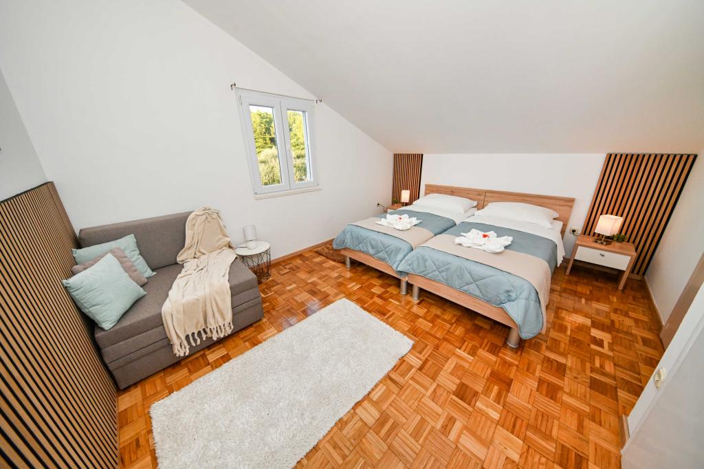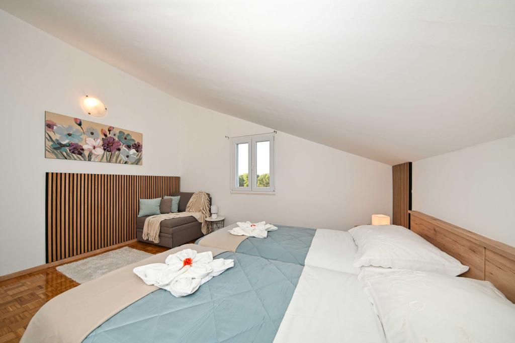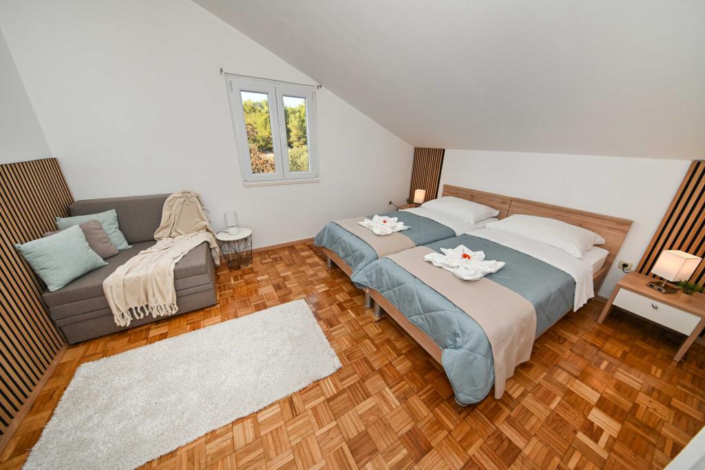 Geef ons de kans en je een onvergetelijke vakantie beleeft u gewoon door ons. In onze appartementen prachtig aangelegde buurt van het bos en de zee uw vakantie zal worden voltooid. De boulevard en de nabijgelegen uitkijkpost, fietspaden, dicht bij Vrana Lake Nature Park en de nationale parken Kornati en Krka watervallen, oude steden van Zadar en Sibenik, zal zeker voldoen aan de verwachtingen van de meest veeleisende gasten. Ons complex is de grootte van 2500m2, omgeven door olijfbomen en dennenbossen. Vanaf de binnenplaats is er een mooi uitzicht op de zee Pasman Channel. In het complex is er: • Familie huis, waar er twee afzonderlijke appartementen (voor 4 en 6 personen). • De appartementen zijn uitgerust met airconditioning, tv, Wi-Fi en een terras met uitzicht op de zee en het zwembad. • Pool: Naast het huis is een zwembad met een prachtige omgeving en ligstoelen • Het zwembad ligt, zijn er twee badkamers met douche en twee badkamers, een aparte ruimte voor wasgoed, die Opremjen met een wasmachine en droger