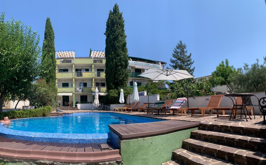 Villa "Smirna" 4*, ZWEMBAD, 1 RIJ, UITZICHT Regio Zadar, Biograd na moru - Sveti Filip i Jakov, PRACHTIG STRAND, NATUURLIJK GROEN, 8 VERSCHILLENDE SOORTEN APPARTEMENTEN, grote tuin, ligstoelen, barbecue, groen, geef het bijzondere charmes. Alle 8 VERSCHILLENDE SOORTEN appartementen kijken uit op de zee en de eilanden. Het bevindt zich op de eerste rij aan de zee. De zee heeft toegang tot zand- en kiezelstenen, en het aangelegde strand heeft douches en natuurlijk groen. In de tuin is er een barbecue, ruimte voor gezelligheid,: Categorisering 4* Receptie Eigen parkeerplaats Afstand van het strand: 75m Afstand van de winkel: 25m Afstand van het restaurant: 50m Afstand van het centrum: 300m Afstand van de hypermarkt: 2 km Afstand van Biograd: 2 km Afstand van Zadar: 25 km Krka-watervallen: 30 km Kornati: 30 km Raften op het eiland Zrmanja per boot Split Međugorje Drubrovnik FACILITEITEN: Zwembad (het zwembad heeft zeewater, zwemmen zonder springen is toegestaan van 8-20 uur) Tuin Ligbedden Tafels en stoelen rond het zwembad Kavomat Fietsverhuur Dučan 50 m Huishouden in appartementen