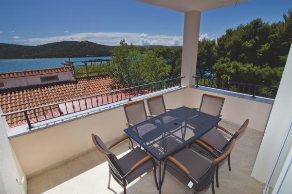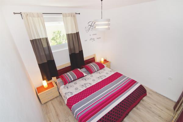 Appartement in een kleine eengezinswoning, gelegen aan de zee, op 5 minuten lopen van het strand in mjestu.Također mogelijk zijn om te zwemmen in de voorkant van het appartement is gelegen in een rustig deel van de stad, ideaal voor een vakantie met het gezin. Het is volledig uitgerust, met een heel groot terras (20m2), gedeeltelijk overdekt. Het appartement heeft een aparte ingang en een parkeerplaats in de tuin kan worden gebruikt en roštilj.Apartman is voorzien van airconditioning en heeft een beveiligde Wi-Fi Het bestaat uit een grote slaapkamer met een tweepersoonsbed, een woonkamer met een slaapbank voor twee volwassenen, een badkamer en kuhinje.Također is het mogelijk om een ligplaats voor waarborgen. Het centrum ligt op ongeveer 15 minuten lopen.
