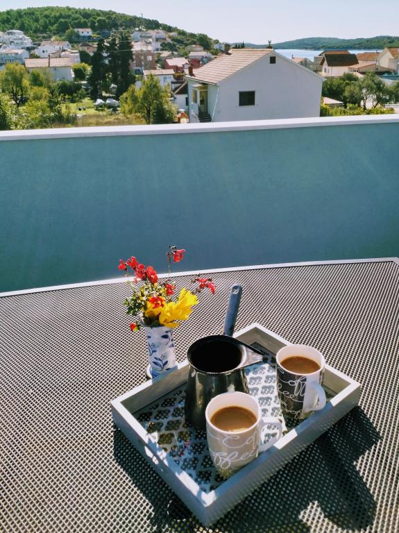 De appartementen van Lilly's Cosy Cove zijn de ideale plek voor een rustige vakantie in stilte en een natuurlijke omgeving. Kies een van onze 3 smaakvol ingerichte en comfortabele appartementen, elk met buitenruimte om te ontspannen en te genieten. Stel je voor dat je 's ochtends wakker wordt met het melodieuze gezang van vogels en de zachte aanraking van de bries. Begin de dag met een kopje koffie en geniet van de geuren van vers gebakken bakkerijproducten uit onze keuken die je kunt bestellen. Geniet van het uitzicht op de zee en onze tuin vol groen en kleuren. Na het ontbijt kunt u een ontspannen wandeling maken naar het kiezelstrand en uzelf verfrissen in de kristalblauwe zee. Als u van wandelingen in de natuur houdt, ga dan van onze tuin door olijfgaarden naar verborgen baaien die alleen van u zijn. Na een dagje relaxen keert u terug naar onze geurige oase van rust, voor een maaltijd die op afspraak voor u wordt bereid door onze meesterkok Joe. Proef enkele van onze gerechten uit verschillende delen van de wereld. Na het diner wandel je langs de zee naar het centrum van Tisno, klim je naar een van de kerken en geniet je van het uitzicht.