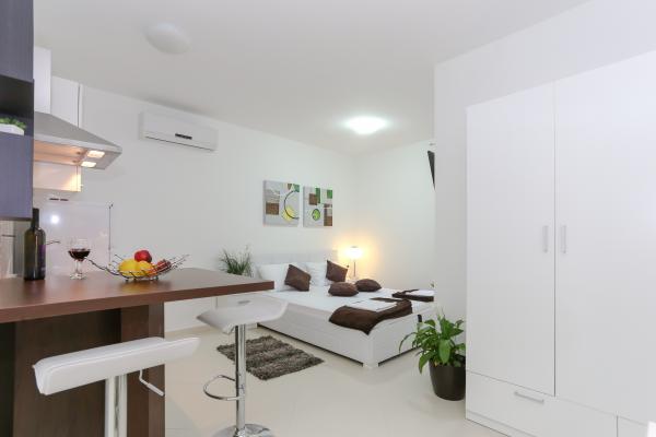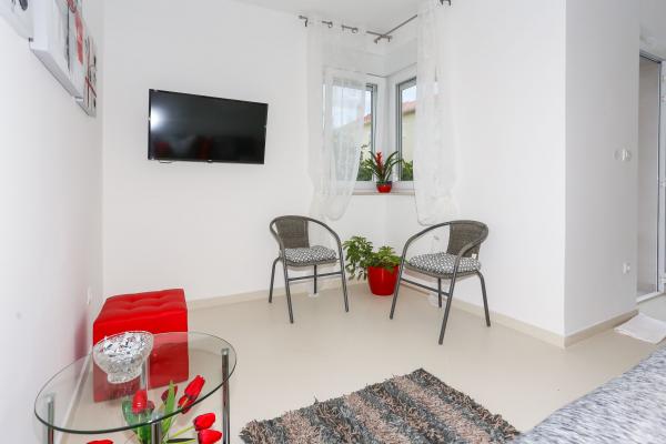 Dit moderne complex bevindt zich in een 4-minuten lopen van het strand. De faciliteit Tribunj Suites ligt in een rustig deel van Tribunj, 1, 2 km van Tribunj haven en 200 meter van de haven Tribunj. Het complex biedt accommodatie met airconditioning, gratis WiFi en gratis parkeergelegenheid. Alle units zijn voorzien van een zithoek en een eetkamer. Sommige kamers hebben een terras en / of balkon. Alle units hebben een keuken met magnetron, broodrooster, koelkast, gasfornuis en een waterkoker. Ze hebben ook een eigen badkamer met douche en een haardroger. Gasten kunnen gebruik maken van de barbecue op het terrein Tribunj The Suites. Zadar luchthaven ligt op 49 km van het pand De Tribunj Suites.