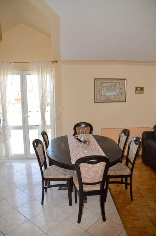 Appartement Blanka (6) is gelegen in Trogir net onder de hoofdweg van Trogir, 15 minuten lopen naar het centrum. Het appartement is gelegen in een rustige omgeving op de eerste verdieping en heeft een prachtig uitzicht over de stad en de zee en is voorzien van grote privé parkeerplaats 1ipo toilet, keuken, wi-fi, tv, airconditioning, wasmachine, groot terras, tuin.