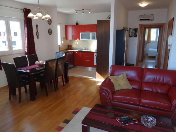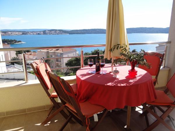 Apartment Marin ligt op het eiland Ciovo op slechts 700 meter (10 minuten lopen) van het historische stadje Trogir, dat onder de bescherming van de UNESCO staat. Het appartement met een terras, dat een prachtig uitzicht op de zee en het dennenbos in de modder heeft, ligt op slechts 10 minuten lopen van het strand. Het comfortabele appartement bestaat uit twee slaapkamers met tweepersoonsbedden, een badkamer, een volledig uitgeruste keuken, een eetkamer en een woonkamer. Het appartement is voorzien van airconditioning en heeft een televisie met internationale programma's en gratis WiFi.