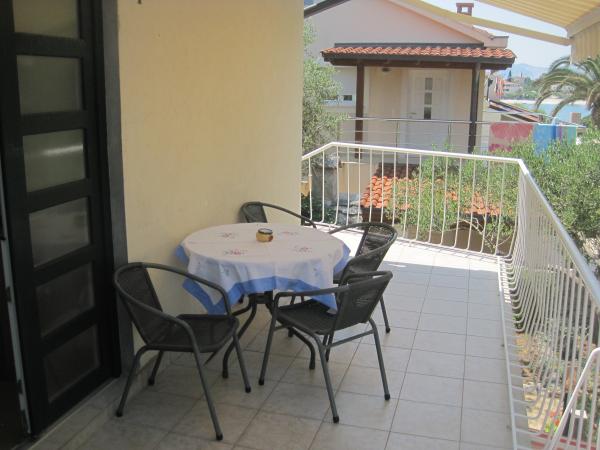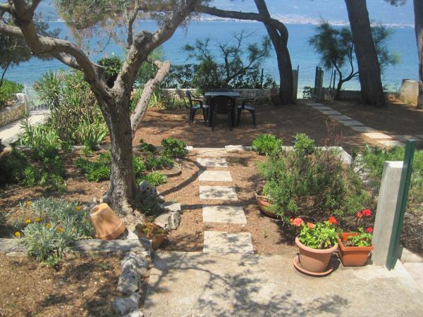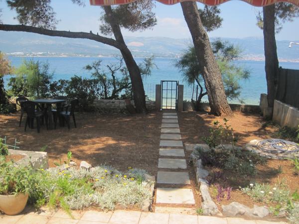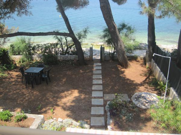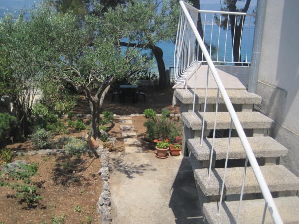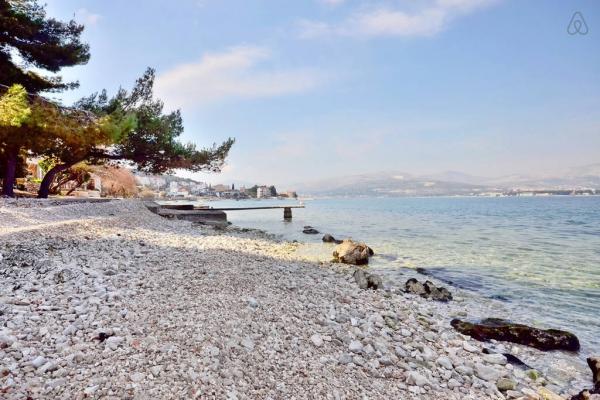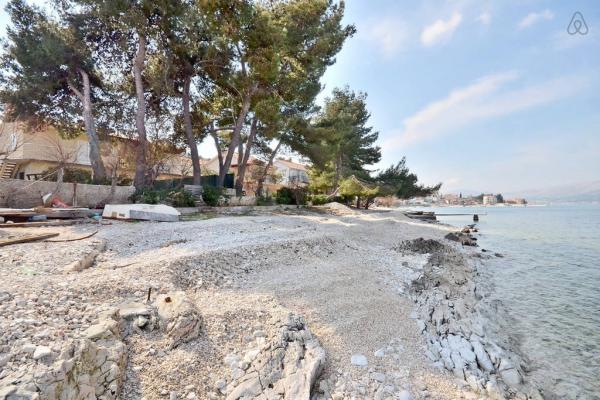 Het appartement ligt dicht bij de zee, het verlaten van de tuin is op het strand. Restaurant, winkels, bars, huur een fiets, het huren van een scooter zijn binnen 100 meter. Parkeren is in het gebouw en omheind. Grotere plek is de stad Trogir ligt op 4 km afstand, te bereiken met de bus. Het busstation ligt op 100 m.