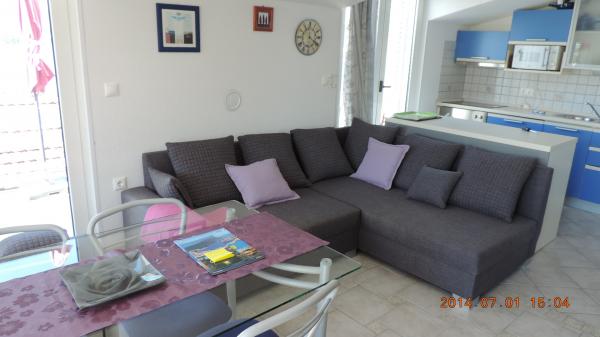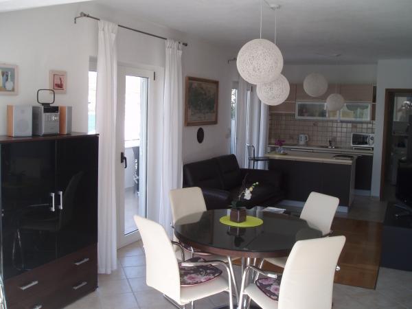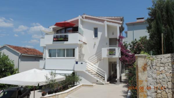 Appartementen familie - penthouse Tanja, aantrekkelijk huis aan de zee, geschikt voor gezinnen, kleine groepen en individuen. Villa Tanja is gelegen in Okrug Gornji, op het eiland Ciovo, vlakbij de zee, op een rustige locatie, op slechts vijf minuten lopen naar het strand. Het strand strekt zich uit over de hele baai met een lengte van 2 km. Onze villa heeft twee luxe / penthouse suites (4 1) en een studio-appartement (2 0). Op de begane grond is er een grote barbecue met serveren gerechten en praten voor 12 personen. Aan de voorzijde van het huis parkeren.