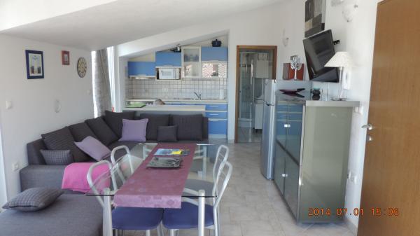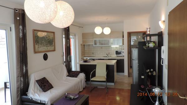 Inlusief wel Toeristenbelasting.Het oorspronkelijke interieur van de appartementen, met aparte dagelijkse activiteiten van onderdelen voor rust en slaap, zorgt voor een aangenaam en comfortabel verblijf. Penthouse appartementen hebben twee slaapkamers, keuken, woonkamer, eethoek en een ruim terras met uitzicht op de zee. De appartementen zijn uitgerust met alle nodige faciliteiten, air - Split systeem, satelliet-tv, Wi-Fi, vaatwasser en wasmachine, borg geld en waardevolle spullen, zeer belangrijk detail ramen zijn voorzien van horren. De appartementen zijn voorzien van alle kleine en grote apparatuur die nodig is voor het bereiden en bewaren van voedsel. Onze villa heeft aangeboden twee luxe / penthouse appartementen en een studio-appartement. - Appartement / Penthouse / Charles (4 1), Acco