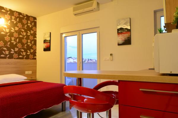 Luxe appartementen Villa Tea liggen op slechts 50 meter van het strand in het bovenste County en 1, 5 km van Trogir. De luchthaven ligt op slechts 5 km afstand. Voor gasten is gratis parkeergelegenheid en een draadloze internetverbinding. Alle apatmani hebben een balkon met uitzicht op zee en een volledig uitgeruste keuken met vaatwasser, magnetron en een waterkoker. Studio appartementen en elke slaapkamer en een woonkamer in het appartement is uitgerust met een tv met satelliet-tv en airconditioning. De badkamers zijn voorzien van een douche, een haardroger en toiletartikelen. Strijkijzer en strijkplank zijn beschikbaar op aanvraag. De appartementen bestaan uit twee slaapkamers met eigen badkamer in elke kamer is beschikbaar als een extra bed in de woonkamer voor twee personen. In de buurt zijn er diverse sportfaciliteiten zoals het huren van jetski's, paragliding en ook de mogelijkheid van boottochten. Het strand is geschikt voor kinderen met een mini aqua park