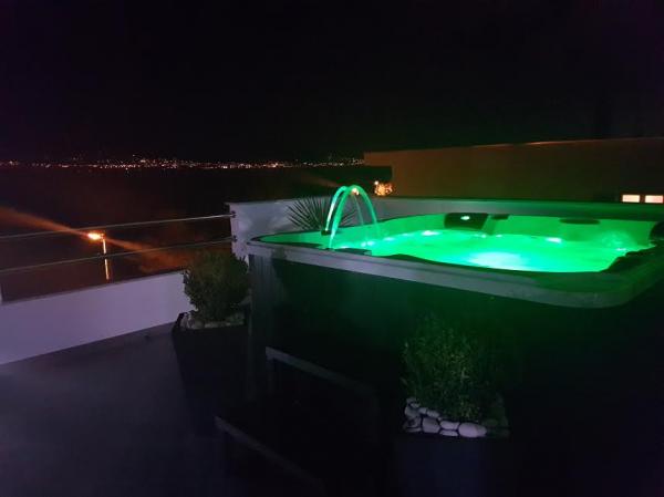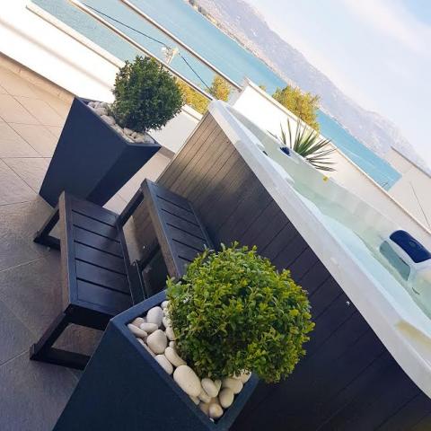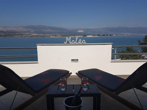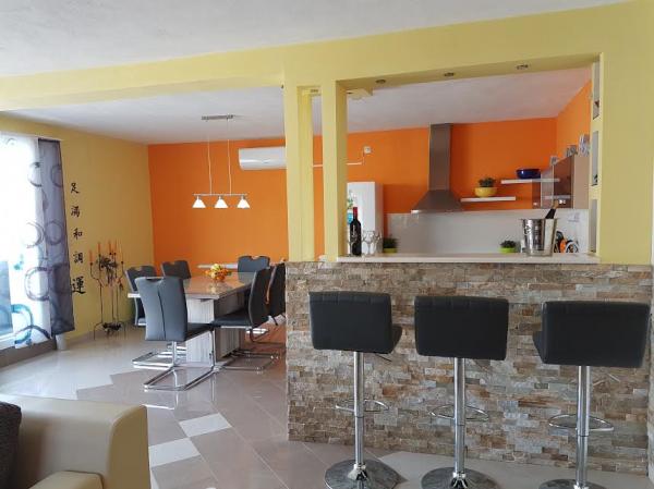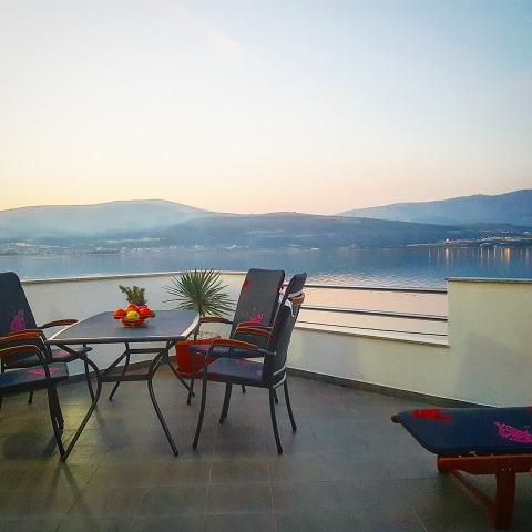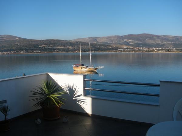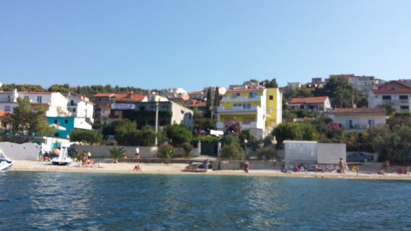 De appartementen zijn gelegen op het eiland Ciovo, in een rustige plaats Okrug Gornji, op het strand met uitzicht op de zee. De onlangs gerenoveerde en modern ingerichte appartementen hebben een volledig uitgeruste keuken, satelliet-tv en airconditioning, Wi-Fi internet. Luxe Appartement1 (2 2) bevindt zich op de 2e verdieping van het huis en de omgeving is 65m2 met een terras van 35m2. Deze enorme terras is een plek voor een onvergetelijke en unieke herinneringen en genoegens van zonnebaden en ontspannen op ligstoelen en ontspannen in de outdoor whirlpool. uitzicht op de zee. Luxe suite bestaat uit een slaapkamer, een badkamer en een grote woonkamer met keuken. Het is volledig nieuw ingericht met alle apparatuur. Apartment no. 2 en NO. 3 (2 2) bevinden zich op de 2e verdieping, maar aan de andere kant van het huis. De twee appartementen zijn sized ongeveer 35 m2, een slaapkamer, badkamer, keuken, woonkamer met een slaapbank voor twee personen, een terras 5m2 met uitzicht op zee. Zijn voorzien van airconditioning, barbecue en een parkeerplaats. De appartementen zijn kleine 2 km van de UNESCO-stad Trogir.