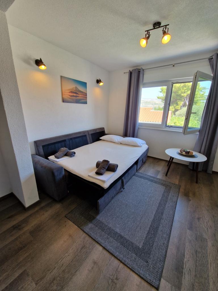 Sterk aanbevolen. De appartementen zijn nieuw, zeer smaakvol ingericht, airconditioning, rolluiken, muskietennetten, parkeren ... Het strand ligt op 5 minuten lopen. Naar Trogir 15-20 minuten te voet. Ze neemt ook een kleine boot naar het centrum van Trogir. Winkel 2 min. Alles is mooi en erg schoon. De gastheren zijn erg vriendelijk en behulpzaam. Het ligt op een mooie rustige plek met uitzicht op de zee. Sterk aanbevolen. Bedankt