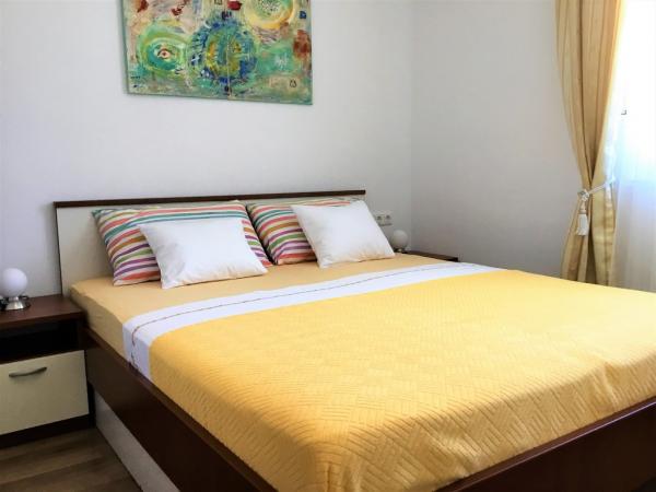 Villa Nikaraoni gelegen op het eiland Ciovo, vlakbij Trogir. De moderne en volledig ingerichte appartementen in het nieuwe huis met slechts 4 appartementen (begane grond, eerste verdieping en zolder). Het huis is gelegen op een rustige en zonnige, met veel groen in de ruime binnentuin (1000 m2). Op de binnenplaats zijn parkeerplaatsen en een barbecue. De balkons zijn ruim en met uitzicht op de zee. De appartementen zijn uitgerust met nieuwe en moderne keuken met vaatwasser, magnetron, grote koelkast, satelliet-tv, gratis Wi-Fi, een wasmachine ... De prijs is inclusief beddengoed en handdoeken (geen strand) en het schoonmaken.