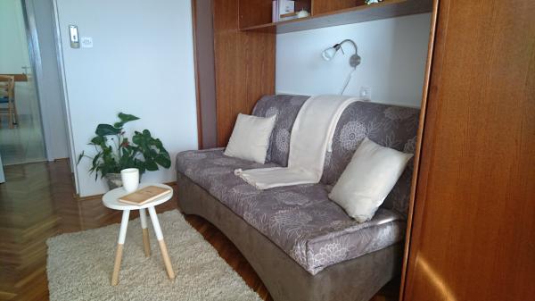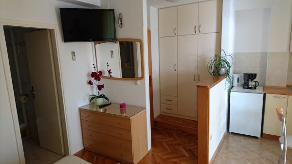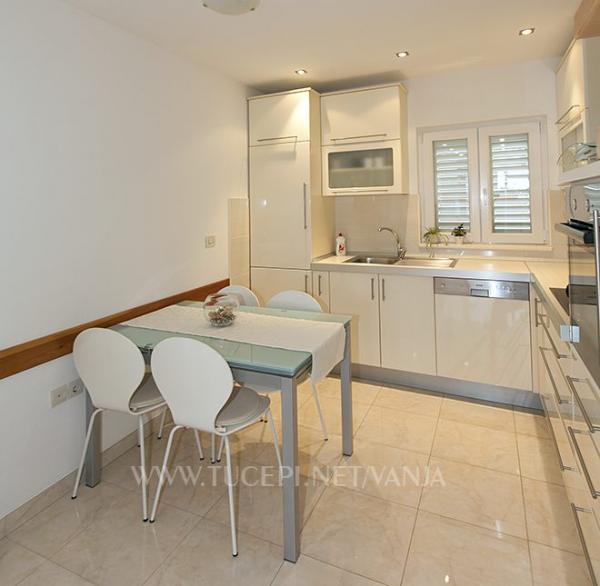 Appartement Vanja II ligt in het centrum, 30m van het dichtstbijzijnde strand, en dicht bij restaurants, postkantoor, apotheek ... Dit modern ingerichte luxe appartement strekt zich uit over 3 verdiepingen en elk heeft een balkon met uitzicht op de zee waar u kunt genieten van de prachtige zonsondergangen! Op de eerste verdieping is er een ruime keuken (vaatwasser, magnetron) en een woonkamer op de tweede verdieping is een kamer met een tweepersoonsbed en een badkamer op de derde verdieping van een kamer met een tweepersoonsbed en een kamer met een eenpersoonsbed en een badkamer! Elke kamer heeft een tv, internet, airconditioning ... Appartement 4 1 (max 6 personen) is ideaal voor een gezin of twee families, waarbij elk heeft zijn eigen privacy!