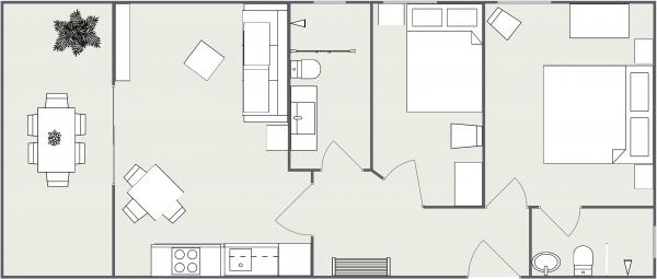 Appartement voor twee personen + twee extra bedden (46 m2)