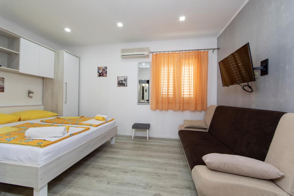 Volledig ingerichte appartementen in het centrum van Tučepi. Gelegen in een gezinswoning. Het appartement is gelegen in het centrum, nabij de apotheek, postkantoor, restaurant, café, winkel. Het strand ligt op 60 meter van het appartement.