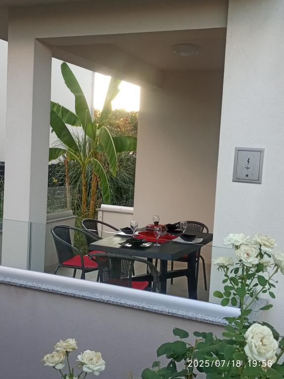De appartementen bevinden zich in een gebouw met in totaal 6 appartementen. Het gebouw is gelegen aan het einde van een autoluwe straat in een rustige omgeving. Het strand ligt op 150 meter van het gebouw. Er is ook een supermarkt Plodine in de buurt. Er is geen lawaai van auto's of andere toeristen in de omgeving. De appartementen bestaan uit twee slaapkamers. Eén is groter met een tweepersoonsbed van 2,0 m x 1,6 m en de andere met twee eenpersoonsbedden van 2,0 m x 0,9 m. De badkamer is ruim met een douchecabine en een raam aan de buitenkant. De keuken heeft een werkblad van 3,5 m en alle benodigde voorzieningen. De woonkamer heeft een bank en een eettafel voor 6 personen. Er is satelliet-tv en airconditioning. Alle ramen zijn voorzien van horren. Er is parkeergelegenheid direct naast de ingang van het gebouw.