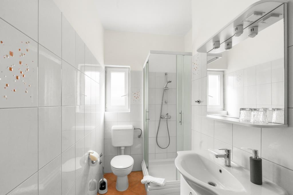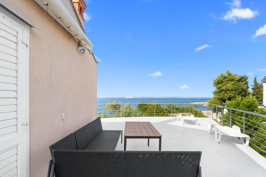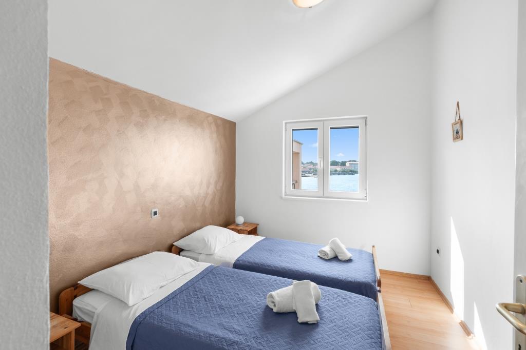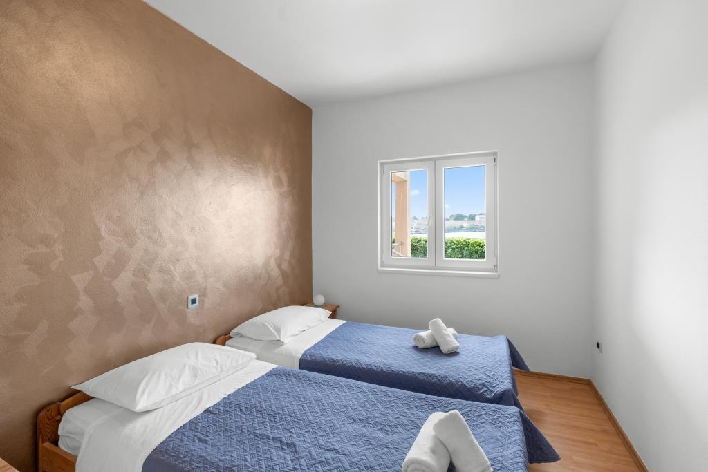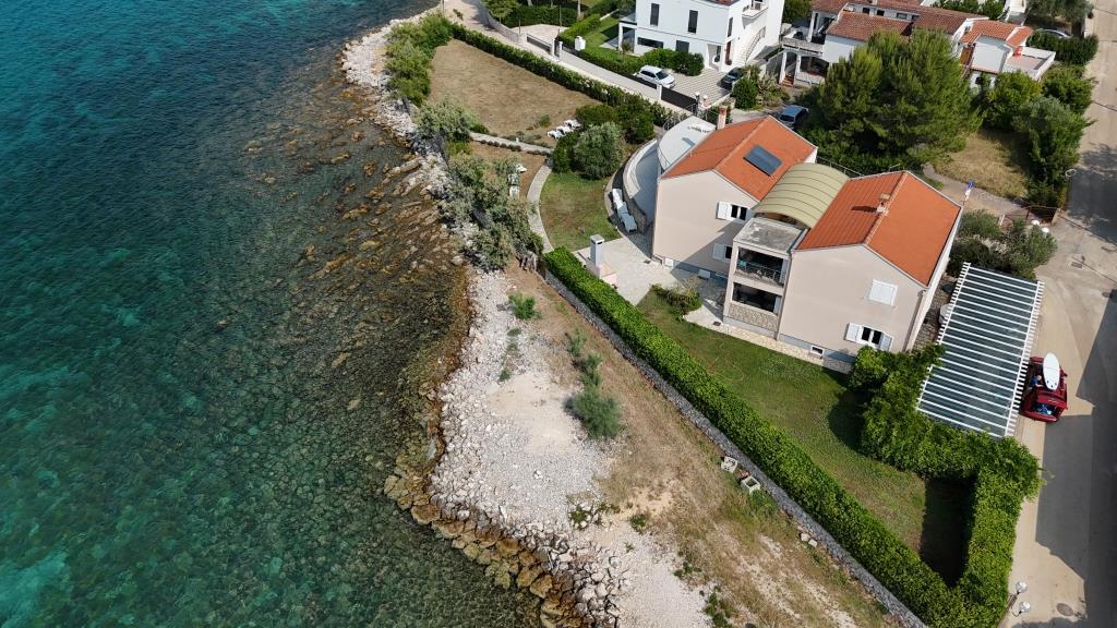 De appartementen liggen direct aan zee in een rustige en vriendelijke landelijke omgeving. Elk appartement beschikt over een groot terras met uitzicht op zee. Ze worden omringd door een aangelegde mediterrane tuin waar kinderen heerlijk kunnen spelen. In de tuin zijn ligstoelen en een gemeenschappelijke barbecue beschikbaar. Elk appartement heeft 2 badkamers. Op 5 minuten loopafstand ligt het centrum, waar een markt is met producten van lokale boerderijen, evenals winkels en restaurants. Er is 24/7 medische noodhulp beschikbaar. Het strand direct voor het appartement is een kiezelstrand. Op korte afstand liggen meerdere stranden waar ook een zandstrand is. Met de auto: de snelweg leidt direct naar de veerhaven van Gaženica. Daarna gaat u aan boord van de veerboot naar Preko. In de zomer zijn de treinen vaak te vinden, minimaal elk uur. Vanaf de veerhaven van Preko neemt u de hoofdweg van het eiland naar de stad Ugljan, die 10 km verderop ligt. Aankomst per vliegtuig: Vanaf de luchthaven van Zadar per bus of taxi in 15 minuten. U komt direct aan in de veerhaven van Gaženica, waar u aan boord gaat van de veerboot naar Preko.