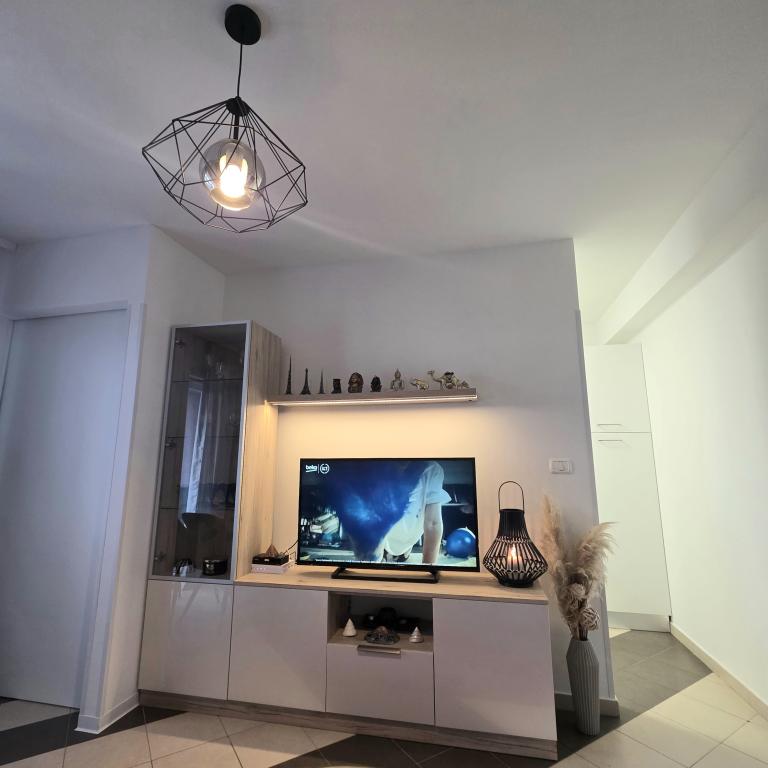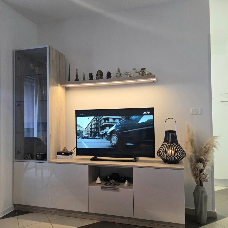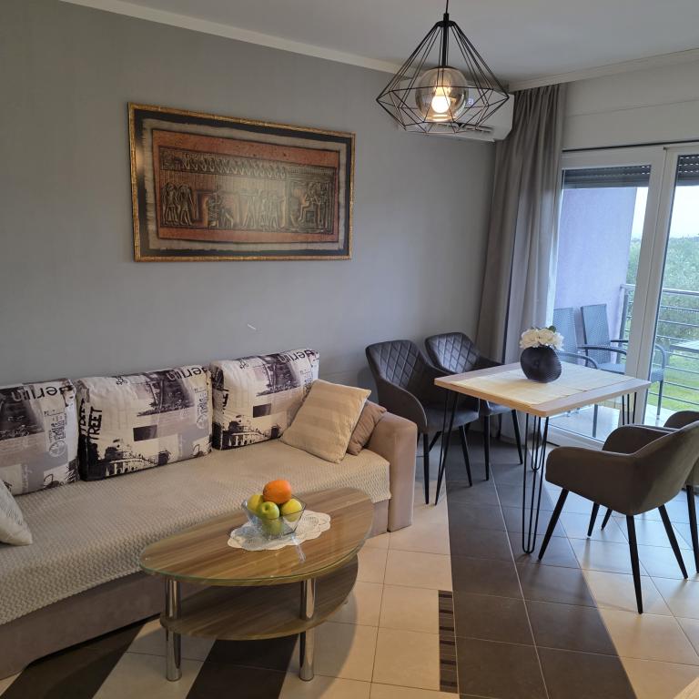 Appartementen Mirella 4 bevinden zich in de nieuw gebouwde residentie Lavender met uitzicht op zee en een prachtig uitzicht op de zonsondergang. Naar de zee en het prachtige zandstrand is het slechts 150 meter. Winkels, bakker en restaurants op 200m. Naar het centrum van Umag 3 km. Langs de zee is er een promenade helemaal naar het centrum van Umag en de mogelijkheid is vervoer per toeristentreintje. De appartementen zijn voorzien van airconditioning en volledig uitgerust met alle apparatuur. Badkamer met massagedouche, wasmachine, haardroger, strijkijzer. Keuken met vaatwasser, magnetron, koffiezetapparaat, waterkoker grote koelkast met vriezer en al het andere om de gast zich thuis te laten voelen. Gratis internet en beveiligde parkeergelegenheid zijn beschikbaar. De prijs is inclusief gebruik van het zwembad, ligstoelen, douche, tweezitter, tafel en stoelen op het overdekte gedeelte van het terras bij het zwembad. Dank u voor het kiezen van Apartments Mirella, ik hoop dat wij als tegenprestatie aan uw wensen zullen voldoen tijdens uw verblijf in onze appartementen. Ons doel is uw tevredenheid en aanbeveling. Beste gasten, welkom bij Apartments Mirella!