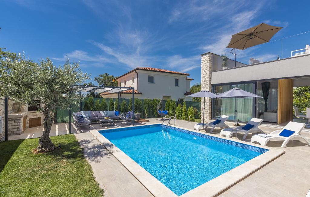 De villa zelf maakt indruk met zijn moderne uitstraling, zowel van binnen als van buiten, en elk detail straalt een benijdenswaardige dosis luxe uit. De combinatie van traditionele en moderne materialen (steen, hout en glas) geeft de nodige warme intieme sfeer en details als een open haard of een zomerkeuken met zwembad versterken die indruk alleen maar. Villa Selest bevat een ruime woonkamer die dankzij grote glazen wanden door daglicht wordt verlicht, twee slaapkamers met tv en drie badkamers. Airconditioning en vloerverwarming in alle kamers zorgen voor een aangenaam verblijf onder alle weersomstandigheden. Benadrukt moet worden dat de faciliteit beschikt over een Wi-Fi-signaal en videobewaking voor extra veiligheid. Het pand van Villa Selest in Šverki ligt in een sprookjesachtig landschap waar u naar de verre Alpen kunt kijken en tegelijkertijd de zee kunt ruiken en tegelijkertijd kunt genieten van alle charmes van de Istrische natuur in perfecte rust en stilte.