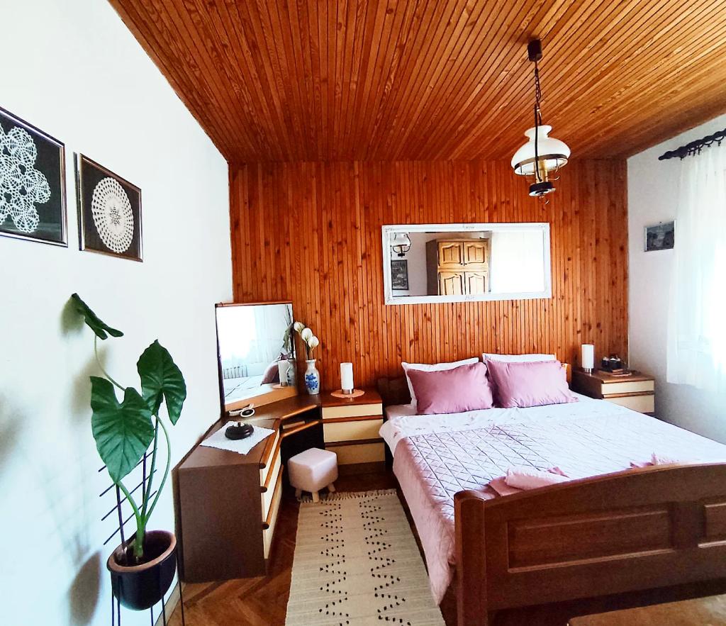 Appartement ingericht in Slavische stijl, gemoderniseerd, functioneel, omgeven door bomen en beekjes in het dorp Velika podno Papuka. De keuken is voorzien van apparatuur en serviesgoed voor het bereiden en serveren van eten. In de slaapkamer staat een groot handgemaakt eikenhouten tweepersoonsbed, evenals een dubbele kledingkast, een nachtkastje en een make-uptafel met spiegel. In de ruime woonkamer staat een leren driezit en tweezit en een smart tv met toegang tot het terras met tuinmeubelen. De badkamer is voorzien van vloerverwarming, een douche en een wasmachine. Tot uw beschikking staat een tuin met een overkapping en een grote tafel met banken, een barbecue, een kinderspeelplaats en een trampoline. Achter het gebouw is een beekje waar je op warme dagen kunt vissen of je kunt verfrissen. Het appartement is gelegen nabij het natuurpark, adrenalinepark, aquapark, bos en wijngaard. Het is 300 meter van het restaurant, 1000 meter van de winkel en het tankstation.