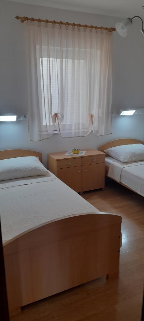 Er zijn drie appartementen in het huis. Twee ervan hebben twee slaapkamers, een woonkamer, een keuken, een badkamer en een groot overdekt terras. Elke kamer heeft één kamer met een tweepersoonsbed, en de andere kamer heeft twee eenpersoonsbedden. Het derde appartement heeft een slaapkamer met een tweepersoonsbed, een keuken, een badkamer en een groot overdekt terras. Alle kamers zijn voorzien van beddengoed. De keukens zijn uitgerust met servies om eten te koken en te serveren, evenals een magnetron en een waterkoker. Elk appartement beschikt over airconditioning, die bij de prijs is inbegrepen. Alle appartementen hebben een aparte ingang. Er is een parkeerplaats bij het huis die voor alle gasten beschikbaar is. Er kan ook gebruik worden gemaakt van een barbecue. Het strand Žitna uvala ligt op 80 meter afstand. Het strand is kiezelstrand en de zee is zanderig. Langs het strand lopen een promenade en een fietspad, en er zijn diverse cafés, restaurants, banketbakkers en bakkerijen. Er zijn verschillende winkels binnen 100 meter. Het centrum van Vir ligt op 1800m afstand.