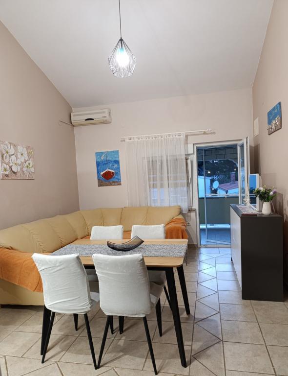 Ik verhuur een onlangs gerenoveerd tweekamerappartement met airconditioning, volledig ingericht voor een gezin van maximaal 4 personen. Het appartement beschikt over twee slaapkamers, een woonkamer met een bed, tv/satelliet, smart-tv en wifi. De keuken is volledig uitgerust met serviesgoed. Er is een badkamer met douche en een binnendouche. Het appartement heeft een groot terras/balkon waar u tot laat in de middag van de aangename schaduw kunt genieten. Er is gratis parkeergelegenheid voor uw auto (wasservice op aanvraag). Een barbecue is beschikbaar voor gasten. Het appartement ligt op 150 meter van het strand/de zee, op 4 minuten loopafstand. Het strand bestaat uit kiezels, vlakbij is een zandstrand voor kinderen, waar zich cafés, restaurants en een ijssalon bevinden. Een winkel ligt op 100 meter afstand, een restaurant op 80 meter en grotere winkelcentra op 1000 meter. Het centrum van Vir ligt op 1500 meter afstand. Het appartement is gelegen in een rustige buurt, aan een stille straat.