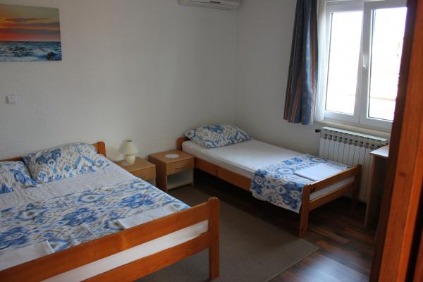 - huis met 3 appartementen. Twee appartementen (A1, A2) bevinden zich op de eerste verdieping, terwijl de derde (A3) op de tweede verdieping ligt. A1 en A2 hebben drie bedden in een slaapkamer met een tweepersoonsbed en een eenpersoonsbed. Beide hebben een keuken met een balkon en een kleine badkamer. A3 heeft twee slaapkamers met vier bedden, een kleine keuken en een badkamer. Alle appartementen zijn voorzien van wifi, tv, airconditioning, koelkast, magnetron, waterkoker en parkeerplaats. Het huis ligt op 300m van de zee / strand Lučica en op 250m van de supermarkt. Water uit de pijp is niet om te drinken.