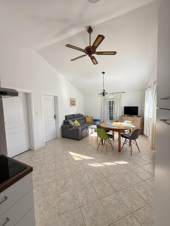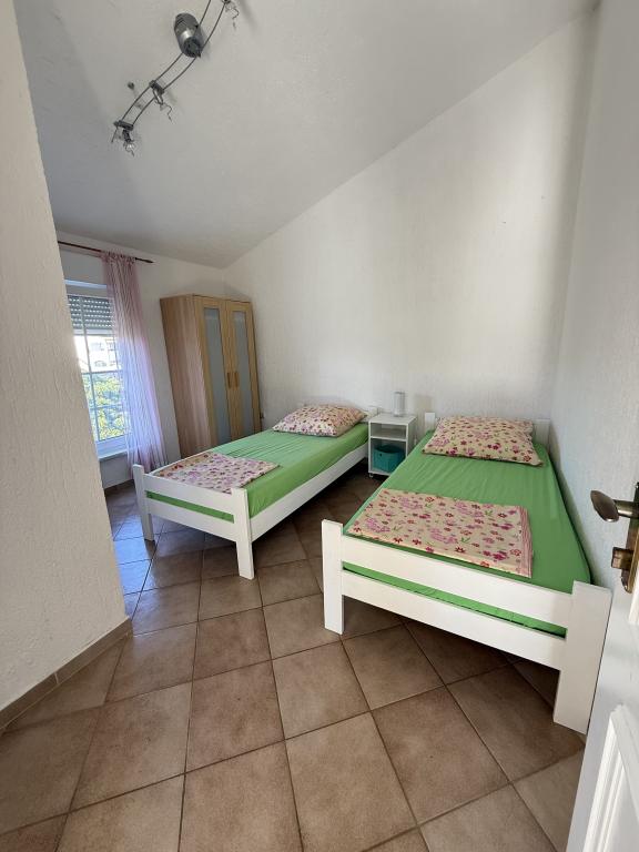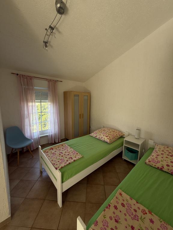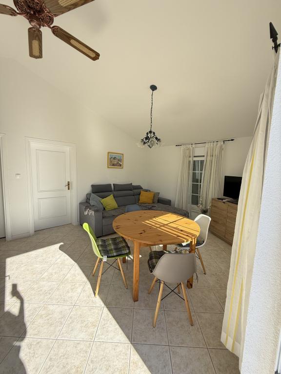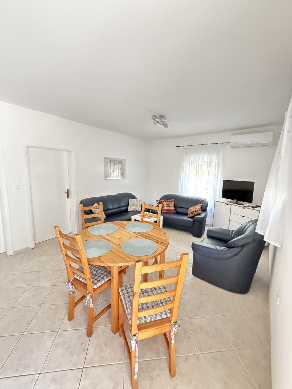Op het eiland Vir, op slechts 150 meter van de zee, bevinden zich twee appartementen met een capaciteit tot 5 personen. De appartementen zijn modern uitgerust, voorzien van airconditioning en geschikt voor een comfortabel verblijf. Elk appartement heeft een eigen terras met een zithoek en in de omheinde tuin hebben gasten toegang tot privéparkeergelegenheid en een barbecue. De nabijheid van de zee en het strand, samen met de praktische voorzieningen, maken deze appartementen een geschikte keuze voor gezinnen en kleine groepen vrienden die op zoek zijn naar accommodatie in de directe omgeving van alle belangrijke voorzieningen. De appartementen zijn geschikt voor maximaal 5 personen. Ze bestaan uit twee slaapkamers, een badkamer met douche en wasmachine, en een volledig uitgeruste keuken die verbonden is met de woonkamer. Voor ontspanning en het buitenleven is er ook een terras met een zithoek. De appartementen zijn voorzien van airconditioning en modern ingericht, ideaal voor een familievakantie of een verblijf met een kleinere groep vrienden.
