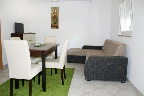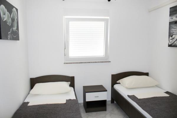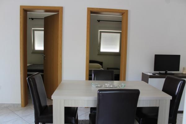 Prachtig ingerichte appartementen met twee slaapkamers op het eiland Vir Appartement 4-6 personen bestaat uit een slaapkamer met een tweepersoonsbed, een slaapkamer met twee eenpersoonsbedden, een volledig uitgeruste keuken met alle benodigde keukengerei, een woonkamer met een slaapbank, een ruime badkamer en een balkon of terras. Alle appartementen zijn voorzien van airconditioning, tv-toestellen en de mogelijkheid om gratis gebruik maken van het internet (Wi-Fi) Elk appartement heeft een aparte ingang. Aan de voorzijde is een gemeenschappelijke tuin met een barbecue.