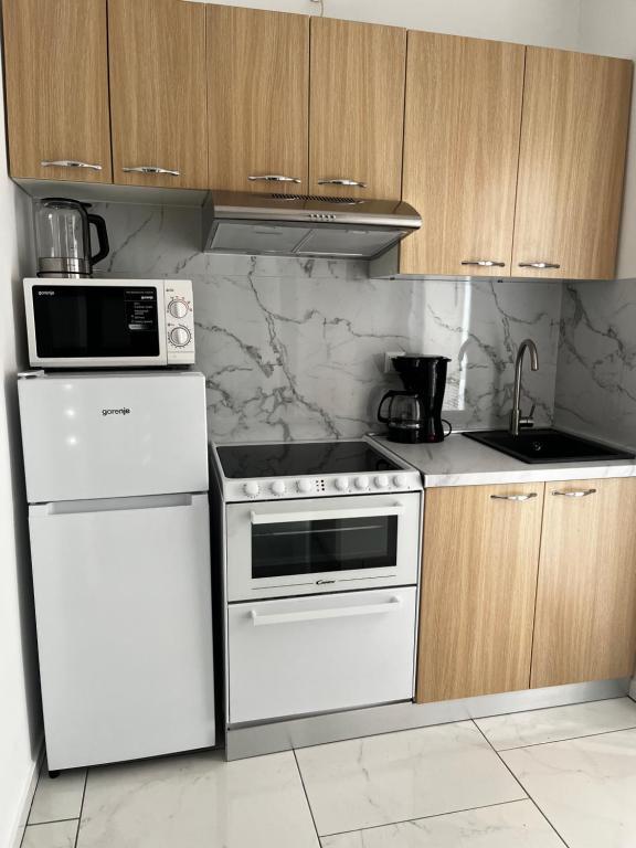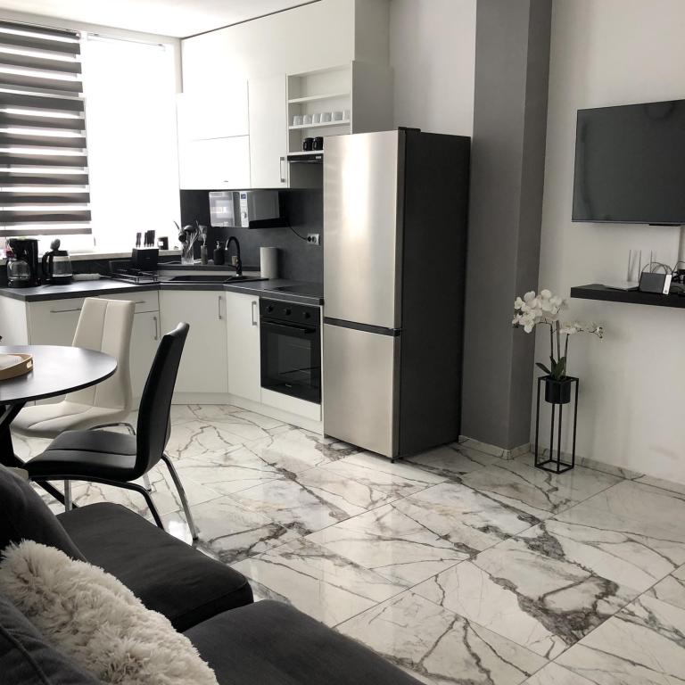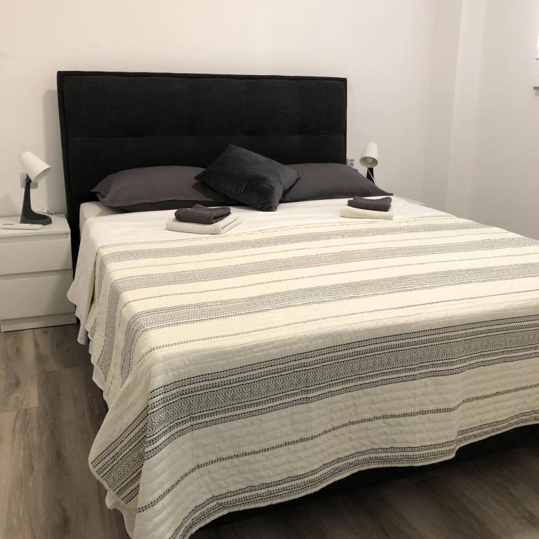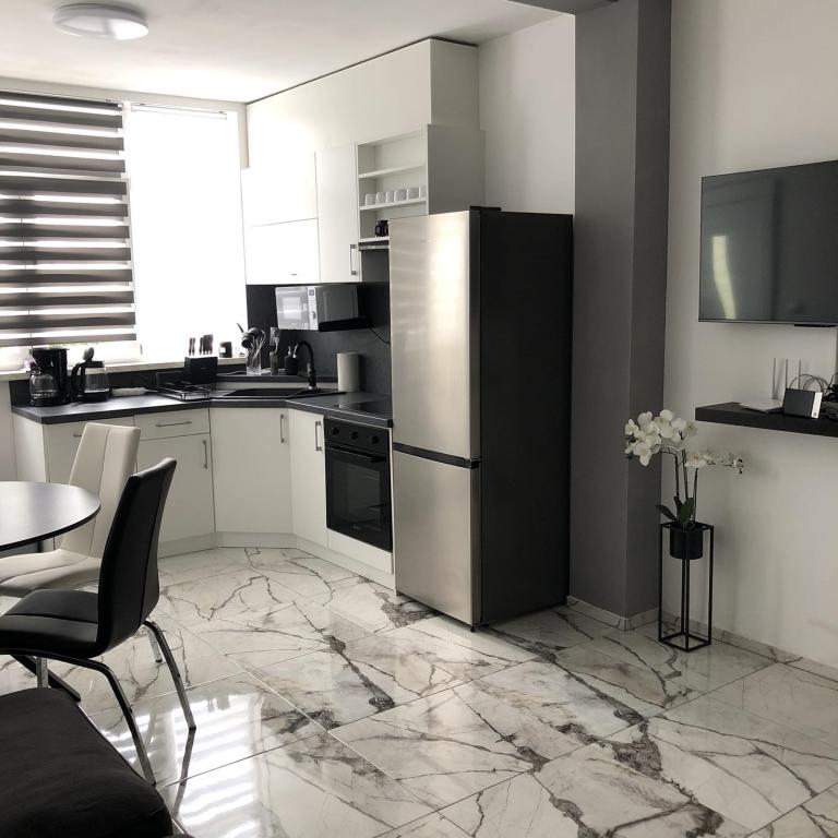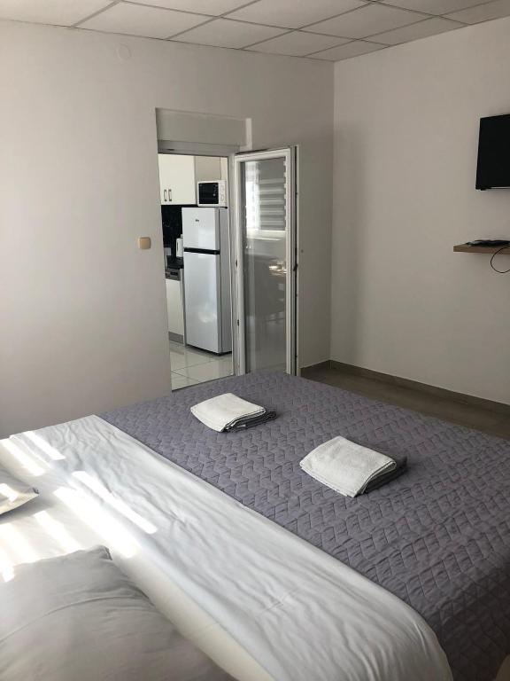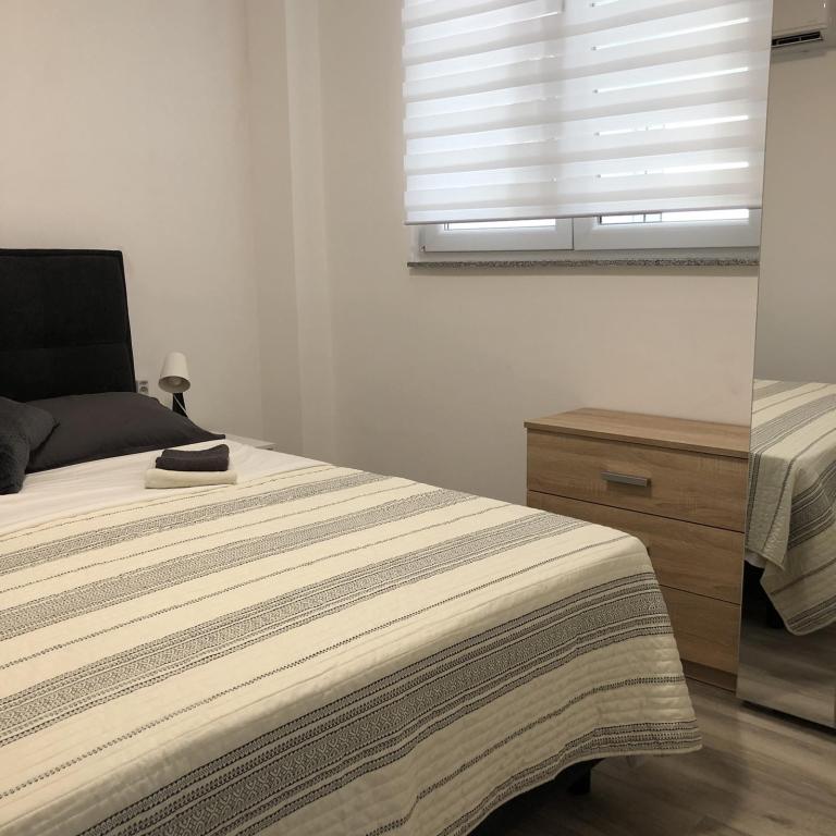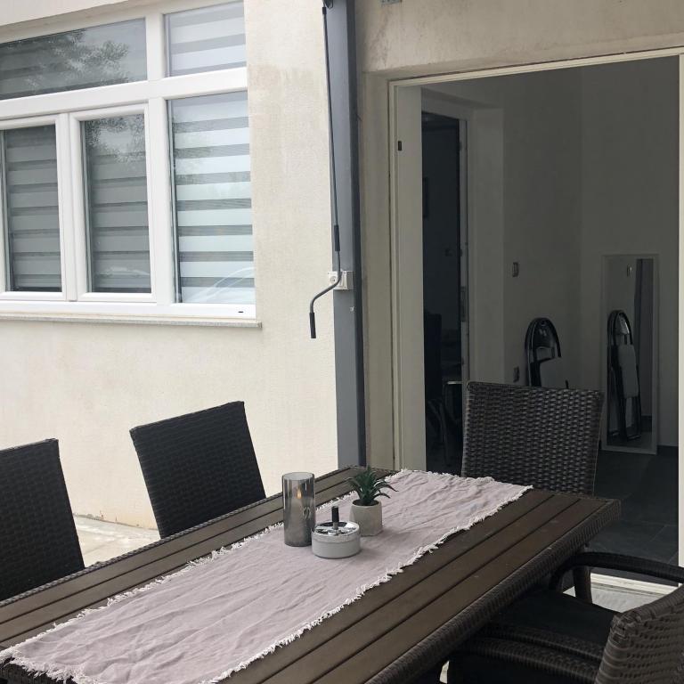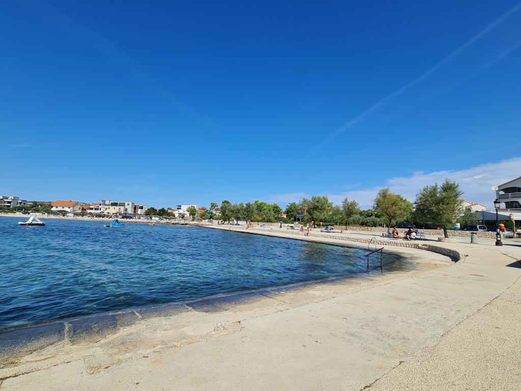 De appartementen Šmit liggen direct aan zee, op slechts een paar stappen van het stadsstrand Jadro. Dit maakt ze een ideale keuze voor gasten die zo dicht mogelijk bij de zee en het strand willen verblijven. Gasten hebben toegang tot een gratis parkeerplaats op het omheinde terrein van de accommodatie, wat zorgt voor extra veiligheid en gemoedsrust tijdens hun verblijf. Elke accommodatie beschikt over een terras met uitzicht op zee, een comfortabele zithoek en een tv. De appartementen zijn volledig uitgerust en de keukens zijn voorzien van een koelkast, magnetron en alle benodigde keukengerei. Elk appartement heeft een eigen badkamer met een douche en alle ruimtes zijn voorzien van airconditioning, zodat uw verblijf ook op warme zomerdagen comfortabel is. In de directe omgeving, op slechts 5 minuten lopen, vindt u alle belangrijke voorzieningen van het eiland Vir – restaurants, cafés, winkels, een bakkerij en een boulevard langs de zee – waardoor de appartementen Jadro een uitstekende keuze zijn voor stellen, gezinnen en gasten die een vakantie willen zonder auto.