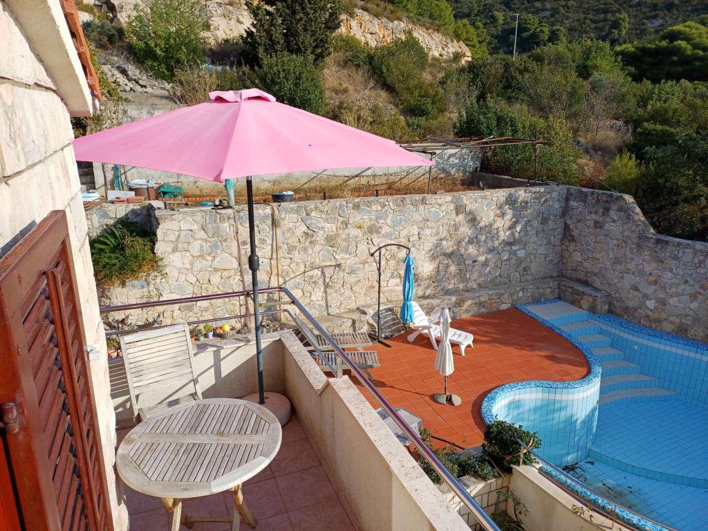 We zijn een week geleden teruggekomen uit Vis. We zijn al acht jaar bij Beba en Vojko. We verbleven in al hun appartementen, elk op zijn eigen manier interessant. De ligging van het huis is uitstekend, het uitzicht over de hele Vis golf, het fort, de vuurtoren.... vlakbij (10 min) is een van de mooiste stranden van Grandovac, en we zwemmen vaak voor het huis aan de aanlegsteiger..voor wie helemaal lui is is er een zwembad met stromend zeewater. Hij heeft Vojko en profi gradele waar hij ons helpt bij het bereiden van visspecialiteiten, een wijngaard waar we hem helpen prachtige druiven te plukken. We kunnen niet wachten om terug te gaan.