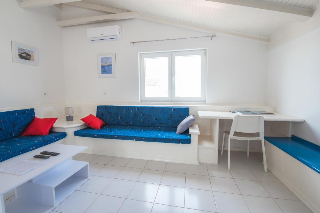 Het appartement is gelegen in een rustig deel van Vodice, in de directe omgeving van Blue Beach (zandstrand, 2 minuten lopen) en het stadscentrum (5 minuten lopen). Het appartement is voorzien van airconditioning en heeft twee slaapkamers, een ruime woonkamer, keuken, eetkamer, badkamer, terras, uitzicht op zee. Het appartement is uitgerust met led-tv, satelliet-tv, wifi, wasmachine, horren voor de ramen, magnetron, waterkoker, extra bed in de woonkamer. Parkeren is mogelijk op het erf van het gebouw. De ingang van het appartement is apart. Huisdieren zijn niet toegestaan.