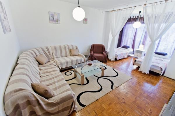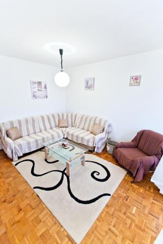 Volledig ingericht appartement met één slaapkamer met een tweepersoonsbed en een woonkamer met visueel aparte ruimte met twee extra bedden. Het appartement heeft ook een badkamer, een keuken met een eetkamer en een terras. Parkeren is mogelijk. Gasten kunnen ook gebruik maken van de grill.