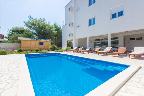 Villa Royal bestaat uit 6 appartementen die zijn ingedeeld met 5 sterren. De villa heeft een zwembad met ligstoelen. Gelegen in Srima dorp in de buurt van de stad, en ligt op 350 meter van de zee. Er zijn licht en voorzien van airconditioning appartementen met gratis WiFi, een lcd-tv met satellietontvangst, een terras en gratis parkeergelegenheid. Alle moderne appartementen zijn voorzien van airconditioning in de woonkamer en slaapkamers, volledig uitgeruste keuken met vaatwasser en oven, elektrische en koelkast. Elk appartement heeft 2 badkamers en toiletten. De badkamers zijn voorzien van een ligbad, wasmachine, douche en föhn. Het dichtstbijzijnde strand ligt op 350 meter, evenals een restaurant en een café. Guidance Center is 1500 meter afstand, Sibenik 15 km, Zadar 60 km, Nationaal Park Krka 30 km Skradin 30 km, Split 90 km en is gelegen in de buurt van het Nationaal Park.