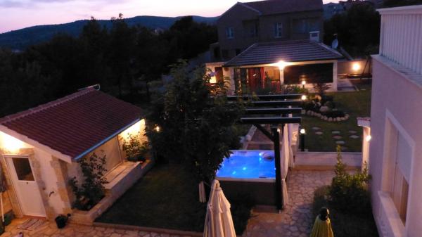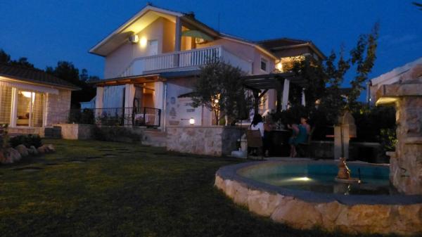 Villa Vagabundo - biedt een sprookjesachtige vakantie voor lichaam en ziel aan alle generaties. Modern, comfortabel en enigszins rustieke villa gebouwd (2012 jaar), met veel liefde en warmte, zal voldoen aan al uw verwachtingen en voldoen aan de meest veeleisende. Het is gelegen in een rustige omgeving, omringd door mediterrane vegetatie op 1300 m met uitzicht op de zee en de plaats. Het biedt een ontspannen sfeer en een onvergetelijke vakantie die u verdient! Geschikt voor families met kinderen vanwege de grote tuin en gemoedsrust. In de tuin is een mooie stenen fontein en grill. Op verzoek bieden wij extra toeslag onze kleine spa offerte-jacuzzi met massage en aperit, en een kleine boot die u kunt nemen naar de nabijgelegen eilanden voor een duik in een prachtige baai van uw keuze toeslag. Vodice is een prachtige plek die de schoonheid van de Adriatische Zee, gastronomische aanbod benadrukt, mooie schone natuurlijke en kiezelstranden, het nachtleven en de gastvrijheid alle bewoners - Kom en zie !! Uw tevredenheid is onze GARANTIE !!!! :)