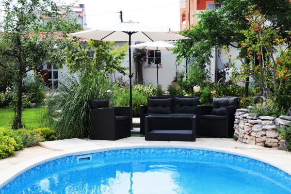 Rustiek ingericht kleine villa in een rustig deel van de stad, in de buurt van de oude stad, en sluit het gebruik van een auto waarvoor u een parkeerplaats. De villa is gelegen in een ruime en weelderige tuin met een zwembad en een park voor de kinderen. Alle benodigde faciliteiten bevinden zich op 10 minuten lopen van het hotel.