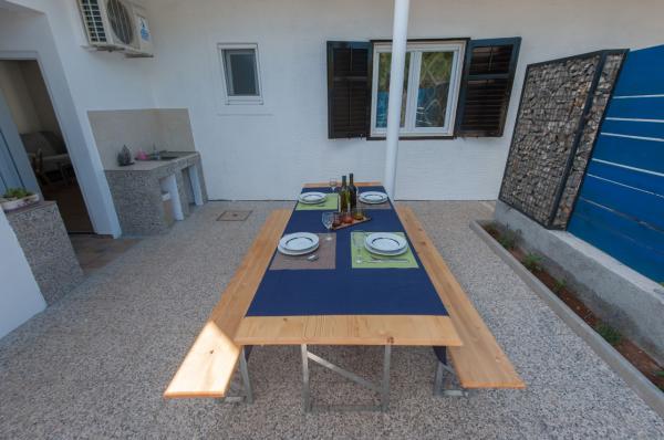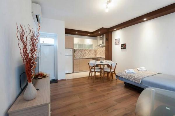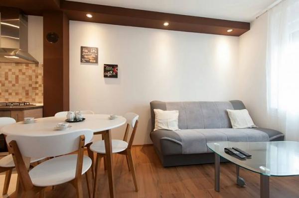 Het appartement is geschikt voor gezinnen, gelegen in een rustig deel van Zadar, omgeven door de natuur. Het appartement beschikt over een aparte kamer met een tweepersoonsbed en de woonkamer heeft een slaapbank. Indien nodig, een extra bed in de kamer. Het is gelegen in een eengezinswoning, met aparte ingang. Het is gelegen op de begane grond, heeft een eigen parkeerplaats, indoor natuurlijke schaduw. Het delen van een overdekt open haard (grill) met gastheren. Gratis wi-fi.