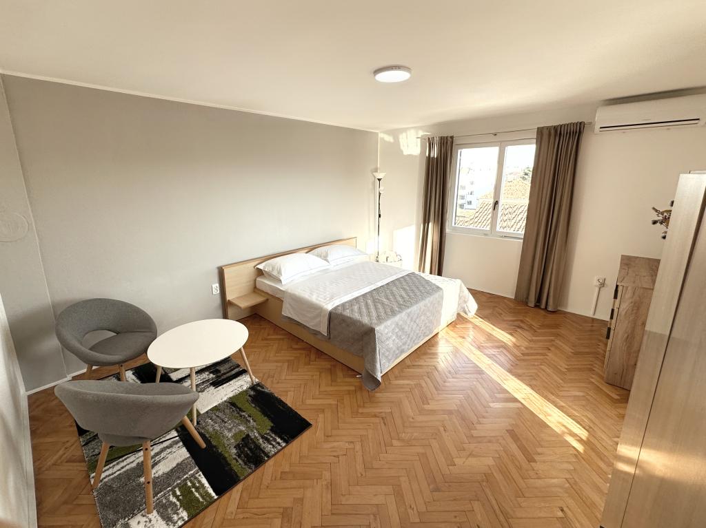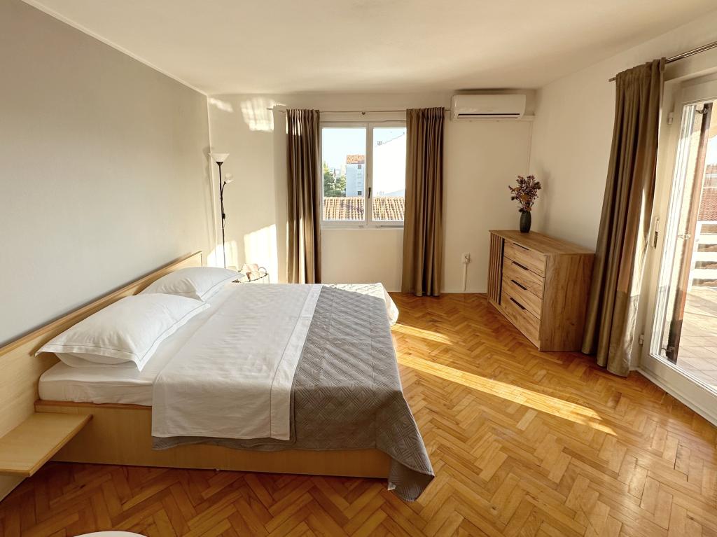 Welkom in het familiehuis in een volledig uitgerust appartement, gelegen op de derde verdieping van het huis. Het appartement is gelegen in Belafuža, in een rustig deel van de stad, op 2,2 km van het stadscentrum en het strand en op 13 km van de luchthaven. De oppervlakte van het appartement is 80 m2, inclusief een badkamer, drie slaapkamers, een keuken en een ruim terras. Het appartement is volledig uitgerust met alles wat nodig is voor een verblijf (2 airconditioners, wasmachine, magnetron, waterkoker, Nespresso-apparaat, 2 smart-tv's en gratis wifi internet. Gasten die voor ons appartement kiezen, hebben een grote privéparkeerplaats. De appartement is ideaal voor 6 personen.