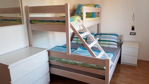 Het appartement is gelegen op een rustige locatie, op 40 meter van het strand. Het heeft een oppervlakte van 140m2 met 3 slaapkamers, 1.5 badkamers, keuken, woonkamer en twee terrassen met uitzicht op de zee. Het is geweldig voor grote gezinnen of 2 gezinnen die het niet erg vinden om samen te wonen en een beetje willen sparen. Het is ook geweldig voor jonge stellen die een leuke tijd willen. Het is comfortabel genoeg voor 10 personen. Als er meer moeten komen, is alles mogelijk :) Het appartement bevindt zich op de bovenste verdieping van het huis op de foto, dus het uitzicht is prachtig. Het appartement is uitgerust met: TV, satelliet, dvd-speler, airconditioning in elke kamer, vaatwasser en wasmachine. WiFi is ook gratis beschikbaar in het appartement. In de tuin staat een barbecue en een tafeltennistafel. Parkeren is mogelijk in de tuin. We wonen niet in een huis, dus je zult meestal alleen zijn. :)