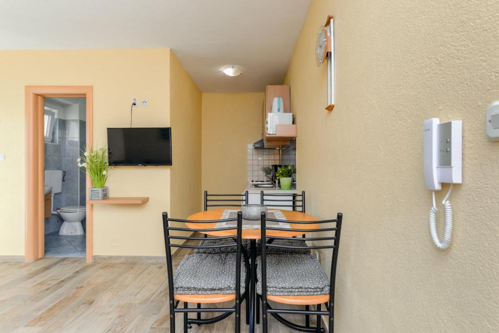 De appartementen liggen op 50 meter van de zee, tussen de twee stranden Uskok en Marex. Naast het appartement ligt een boulevard die naar beide stranden leidt, waar u in 10 minuten naartoe kunt lopen. Elk strand heeft een café en een kinderpark. In de oude stad kunt u rekenen op de wal of per boot. Je hebt 12 minuten lopen en de boot brengt je 1 euro per persoon. Alle boottochten naar Kornati vertrekken vanuit de haven bij de uitgang onder het appartement, op 50 meter van het appartement (eendaagse tochten naar het Kornati Nationaal Park). In de buurt van het appartement zijn tennisbanen (100m) en restaurants, Hungry Eyes, Rafaelo, Lungo Mare, Mamma Mia ... (100-800m). Winkel, supermarkt, bakker, apotheek en slager liggen op 400 meter van het appartement (5 minuten lopen). Voor meer informatie kun je je inbox en groeten bekijken