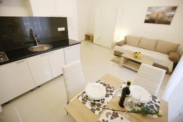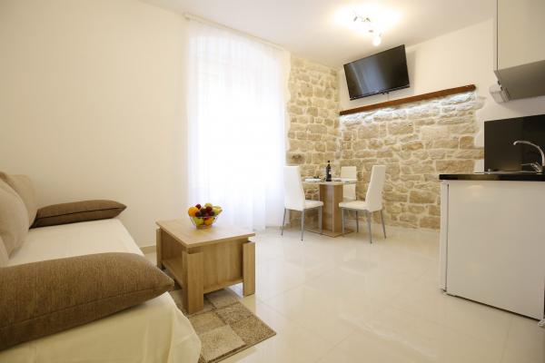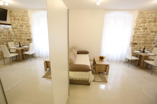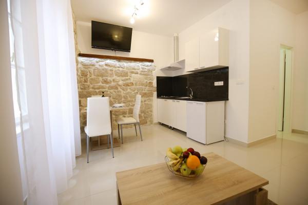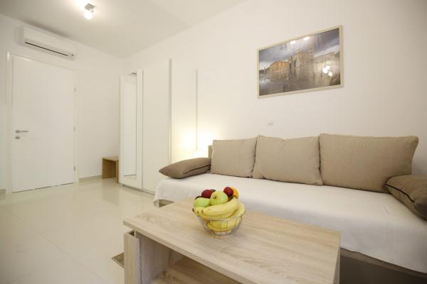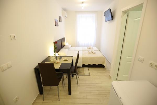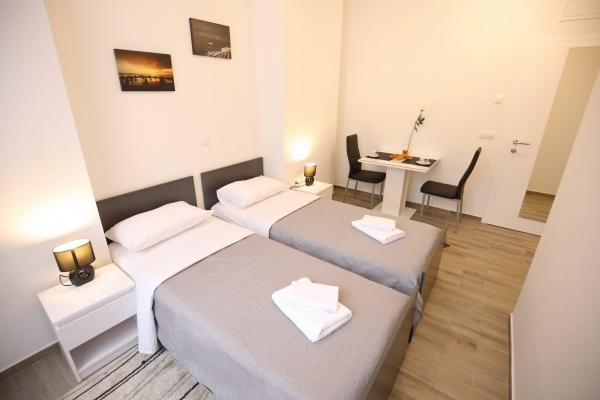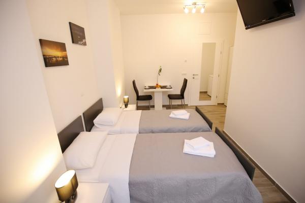 Sites van Zadar De appartementen zijn gelegen in het centrum van de oude stad, op slechts 100 meter van de Captain's Tower en op 60 meter afstand van het Volksplein, terwijl de zee orgel ligt op slechts 10 minuten te voet. Er is gratis parkeergelegenheid op 8 minuten lopen. Het is uitgerust met twee SMART TV airconditioning volledig functionele keuken, met uitzicht op de bezienswaardigheden van de stad, een bad met een haardroger, wc-papier, shampoo, vloeibare zeep, handdoeken groot en klein, een bureau, een kast en een tweepersoons bed in de slaapkamer. Studio appartement is uitgerust met een volledig functionele keuken, airconditioning, eetkamer, SMART TV 43 \ diagonaal, een zithoek met een bank wordt omgezet in een tweepersoonsbed 160x200, met uitzicht op de bezienswaardigheden van de stad en een volledig uitgeruste badkamer. De kamers zijn uitgerust met twee aparte bedden die gemakkelijk in een tweepersoonsbed kunnen samenvoegen, zonder ruimte tussen de matrassen, airconditioning, kledingkast, tafel met twee stoelen koelkast en een waterkoker, en een eigen badkamer en SMART TV.
