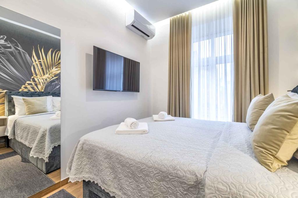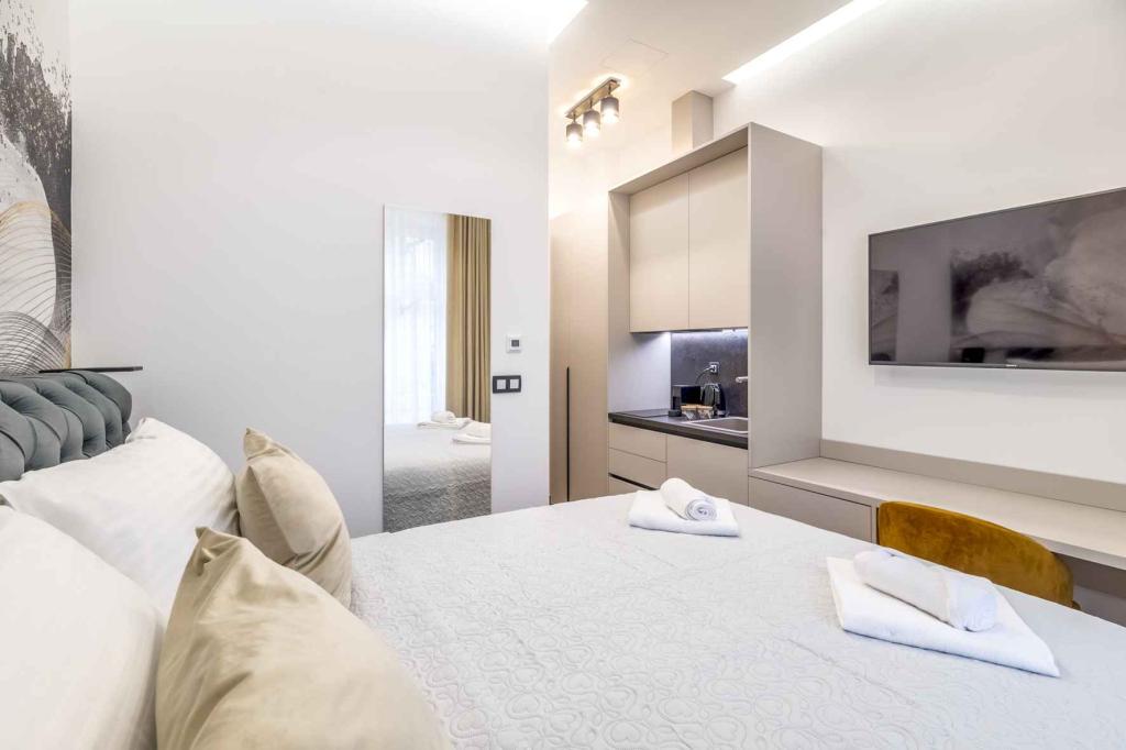 ZAGABRIA Boutique Studio Apartments ligt in het hart van Zagreb, op slechts 30 meter van het Ban Jelačić-plein. Modern ingerichte appartementen bieden luxe comfort, supersnelle wifi, slimme sloten voor 24/7 toegang en volledig uitgeruste keukens. Ze zijn ideaal voor zakelijke gasten en toeristen, met een toplocatie nabij culturele bezienswaardigheden, winkels en restaurants. Naast moderne voorzieningen kunnen gasten genieten van een rustige sfeer en het gemak van de nabijheid van het openbaar vervoer. Al onze appartementen bieden luxe en functionaliteit. Ze zijn ingericht met modern meubilair, met ruime bedden van 200x160 cm, smart-tv met kabelzenders en een volledig uitgeruste keuken (Nespresso-apparaat, koelkast, servies). Appartement 8 beschikt over een extra woonkamer en een bed voor twee personen. De moderne badkamers zijn voorzien van een douche, een haardroger en eenvoudige toiletartikelen. Ook kunnen gasten in alle kamers genieten van supersnel optisch internet en airconditioning.