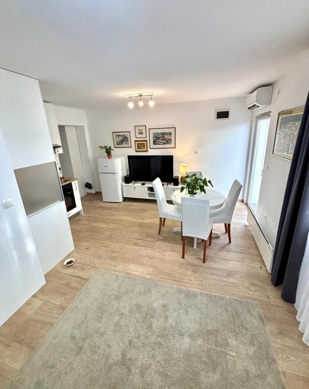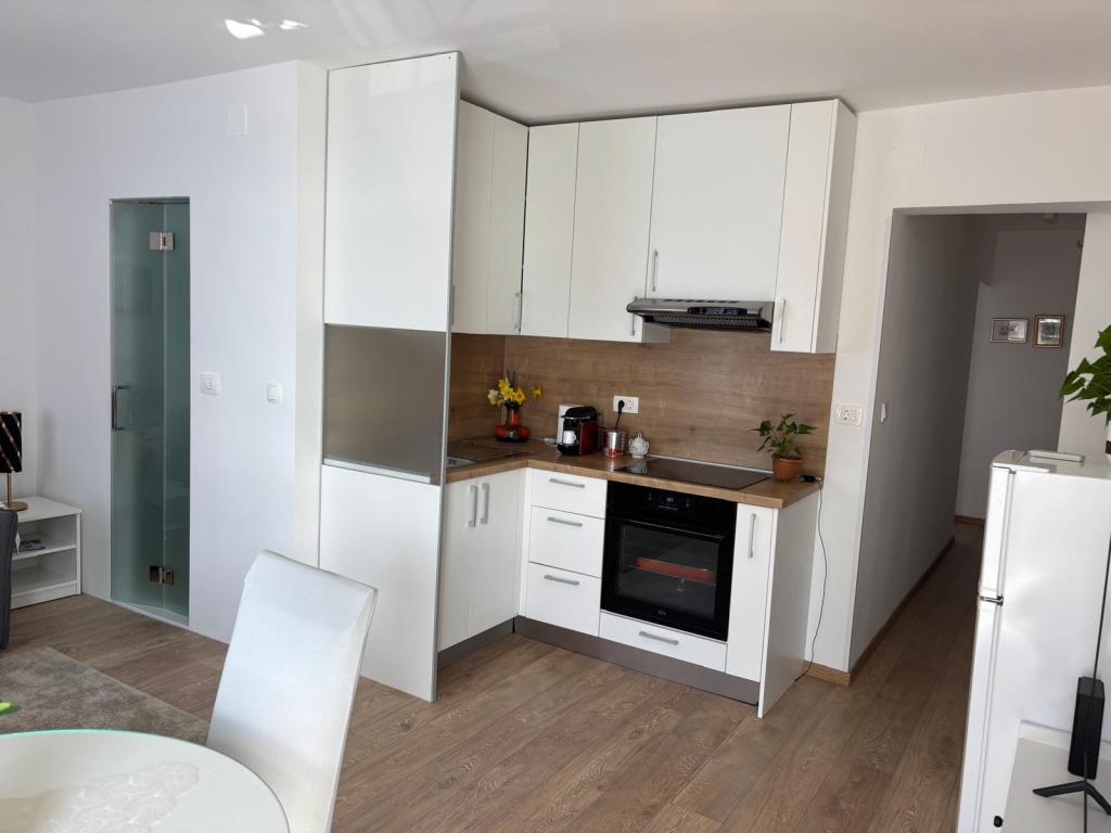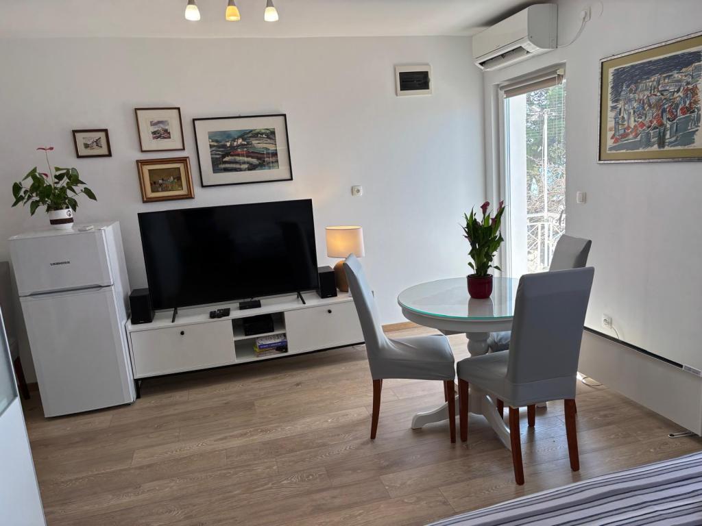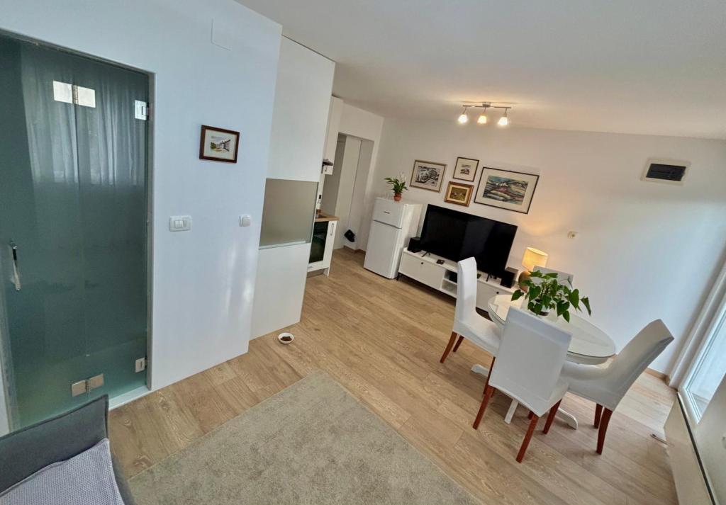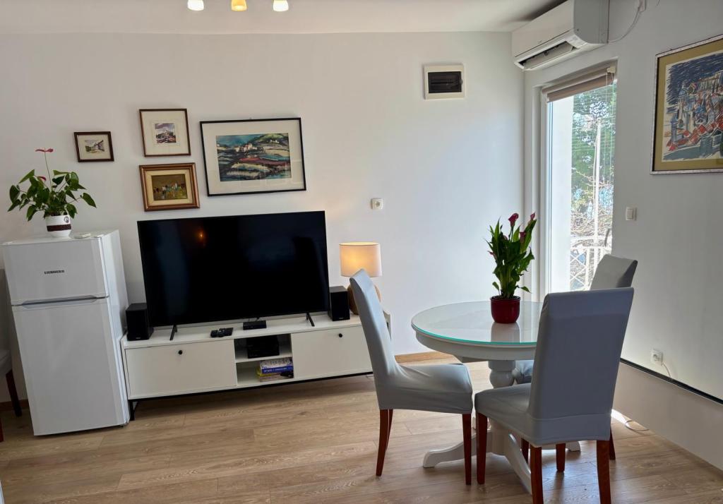 Het studioappartement is volledig en modern ingericht en bevindt zich op de eerste verdieping van een gezinswoning, op slechts 30 meter van de zee en een prachtig kiezelstrand met een geleidelijk aflopende zee. Er is parkeergelegenheid voor een auto voor het huis en in de tuin staat een tuinhuisje met een barbecue en tafels om in de schaduw te zitten. In de buurt vindt u winkels, restaurants, een patisserie en aan de rand van het dorp ligt winkelcentrum Plodine.