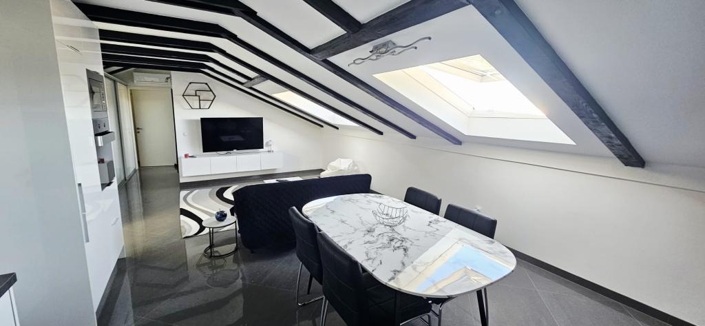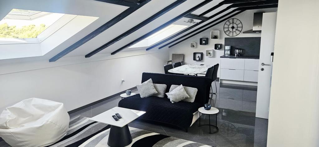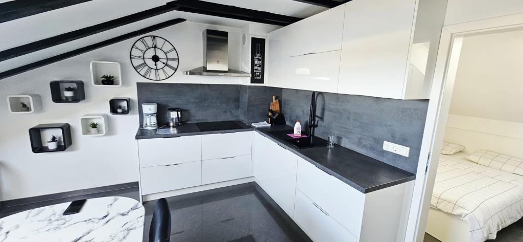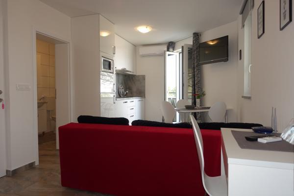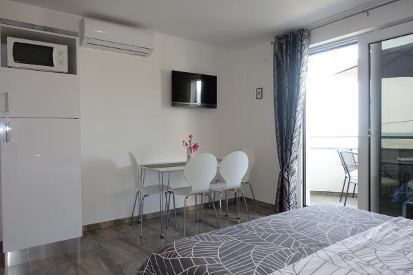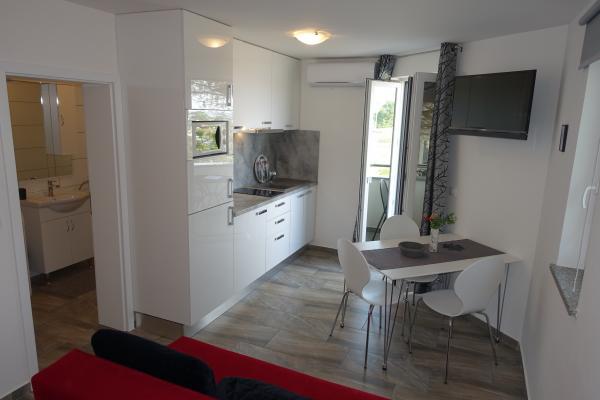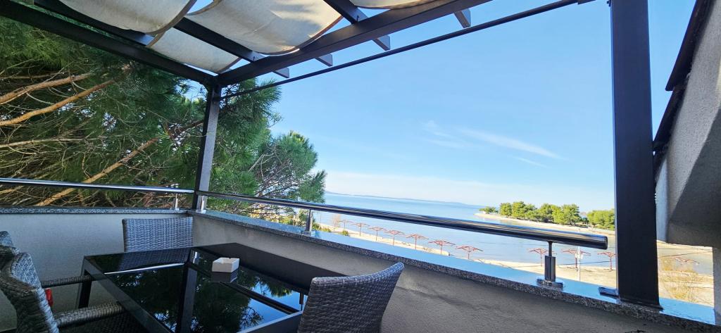 De accommodatie ligt direct aan zee, pal aan het strand in Zaton. De huizen met appartementen liggen naast elkaar en alle appartementen bieden uitzicht op zee. Wifi, parkeergelegenheid en airconditioning zijn bij de prijs inbegrepen.